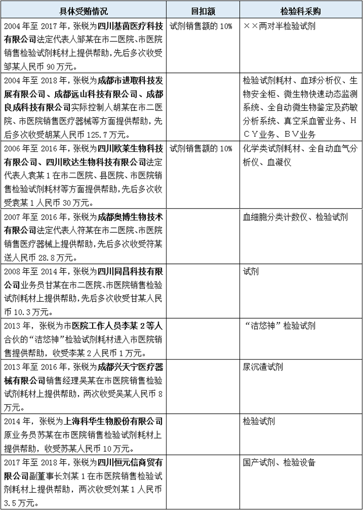 近期,中国裁判文书网公布了四川省阿坝州人民医院医疗腐败窝案中检验科主任罗玉雷的刑事判决书: 被告人罗玉雷利用职务之便,为他人谋取利益,非法收受他人财物共计人民币134.954547万元,其行为已触犯《中华人民共和国刑法》第三百八十五条第一款的规定,构成受贿罪。 判决如下: 一、被告人罗玉雷犯受贿罪,判处有期徒刑三年六个月,并处罚金二十万元(已缴纳); (刑期从判决执行之日起计算。判决执行以前先行羁押的,羁押一日折抵刑期一日,即自2021年1月15日起至2024年7月14日止。) 二、扣押于金川县人民检察院专户的赃款120.8万元予以没收,由扣押机关上缴国库;扣押在案的川A9××××大众牌宝来轿车一辆予以没收,上缴国库。 公布的文书详细记录了被告人在试剂采购等方面利用职务之便,多次接受试剂供应商贿赂,以“照顾”他们的生意。 从表格可以看出,医药企业主动向检验科主任行贿,主要是为了能够获得向医院销售医药耗材的机会,这也证实了,医疗器械、药品和耗材采购中潜规则盛行、红包回扣泛滥、一些非基本用药药价虚高等黑色利益链的现象普遍存在。虽然检验科主任在大型设备的“采买”上没有绝对的“拍板”权,但是,在这些医疗耗材的采购上,却是拥有话语权的,而这个话语权也间接地决定了他在职务范围内受贿额度的话语权。 检验科主任为了一己私利非法收受医药公司贿赂这种案件屡见不鲜,有些接受贿赂的当事人都会抱着“我不收钱,就便宜了药贩子”的心态,疯狂“收钱”,譬如去年眉山市第二人民医院检验科长张锐受贿一案,罗玉雷受贿的金额和被告人张锐收受的贿赂款相比,算的上是小巫见大巫了。 经审理查明,2004年至2019年期间,被告人张锐在担任眉山市第二人民医院(以下简称市二医院)检验科副主任、主任、彭山县人民医院(以下简称县医院)院长、眉山市人民医院(以下简称市医院)副院长期间,利用职务上的便利,在工程项目招标、医疗器械采购等方面为他人谋取利益,先后收受邹某、胡某、王某2等18人财物共计人民币980.9万元、美元0.3万元(折合人民币2.121万元)以及价值3.5万港元(折合人民币30.099万元)的赌场筹码。 (文书中与检验试剂、检验设备有关的受贿内容) 近年来,大批检验科主任相继落马: 2021年3月,安徽纪检监察网发布通报:安徽医科大学第二附属医院检验科主任管世鹤接受纪律审查和监察调查。 2020年5月,黔江中心医院检验科主任付晓和财务科科长钟华共计收受1770万元,受贿数额巨大,付晓被判处有期徒刑10年。 据统计,2018年至2019年,共有6位检验科主任级人员因贪污受贿而落马。 在大部分人看来,医院腐败应当更多的集中在涉及大型设备和高值耗材的部门科室,而在大众心目中检验科一直处于边缘,无非是抽血验尿之类的化验、报告,如此大数额的受贿又是从何而来的呢? 事实上,检验科在医院所有科室中是较为特殊的,因为检验科每天都要做大量的检验,而且要保证检验所需要的试剂是不间断地供给的。虽然检验科耗材的确并不值钱,回扣金额很小,但检测项目多,耗材量巨大。即便每张试纸所能拿到的回扣不多,但日积月累,向企业收受回扣的“油水”自然也就能积少成多,长久下来数额更是十分惊人。 与此同时,部分地区的检测试剂等材料种类繁多,涉及厂商经销商数量大,有时无需采用统一招标的形式,这也给那些贪污腐败分子提供了钻空子的机会。 |
