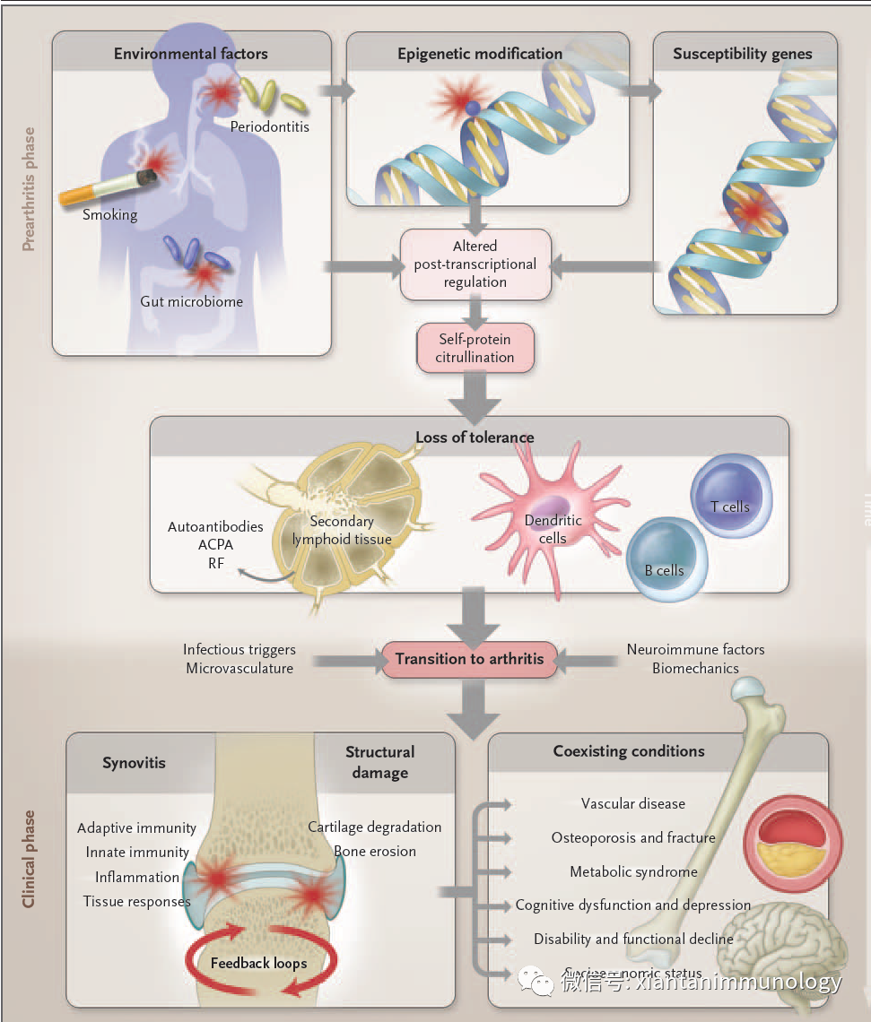 自身免疫性疾病影响了世界上大约5%-8%的人口,给患者造成了巨大的痛苦。 人类已经发现了超过80种自身免疫性疾病,有全身性的,如系统性红斑狼疮可影响皮肤、关节、肾脏和中枢神经系统等,也有器官特异性,如1型糖尿病,主要影响胰腺。 World Journal of Pediatrics (2020) 16:19–302. 类风湿性关节炎rheumatoid arthritis 3. 银屑病关节炎/psoriatic arthritis Lancet . 2018 Jun 2;391(10136):2273-2284. 4. 中轴型脊椎关节炎axial spondyloarthritis Arthritis Research & Therapy (2019) 21:135 5. 重症肌无力myasthenia gravis