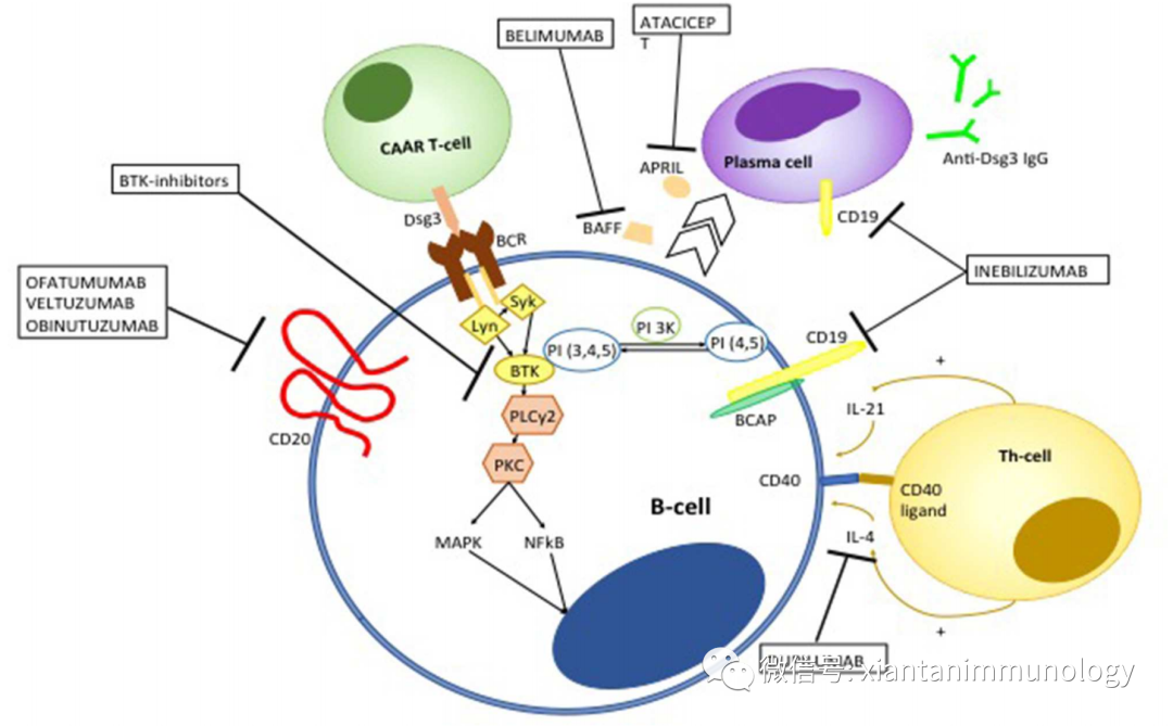 天疱疮免疫病理机制及药物(Front. Immunol. 10:1418.)发病率:0.5-1% 常见症状:乳白色的皮肤斑块