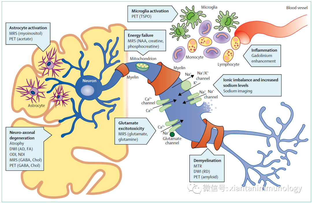 Lancet. 2018 Apr 21;391(10130):1622-1636.  Nat Rev Neurosci. 2019 February ; 20(2): 83–93.12. 视神经脊髓炎neuromyelitis optica发病率:0.004% 常见症状:类似于多发性硬化症,更加严重