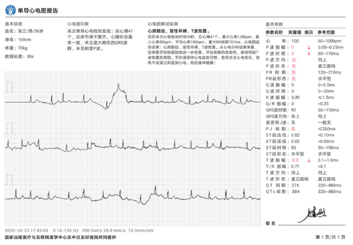 很多人在日常体检中经常会有心电采集,但复杂的电波信号普通人很难看懂。除了可以选择AI算法解读心电图外,华为联合“国家远程医疗与互联网“,医学中心是权威的国家级医学中心,精选三甲医院的专业医师提供人工心电解读服务,给出带有医师签名的报告,给予心电解读结果,帮助用户及早发现心律失常高风险,自主管理心脏健康。工作日最快可以1-2min之内出反馈结果。