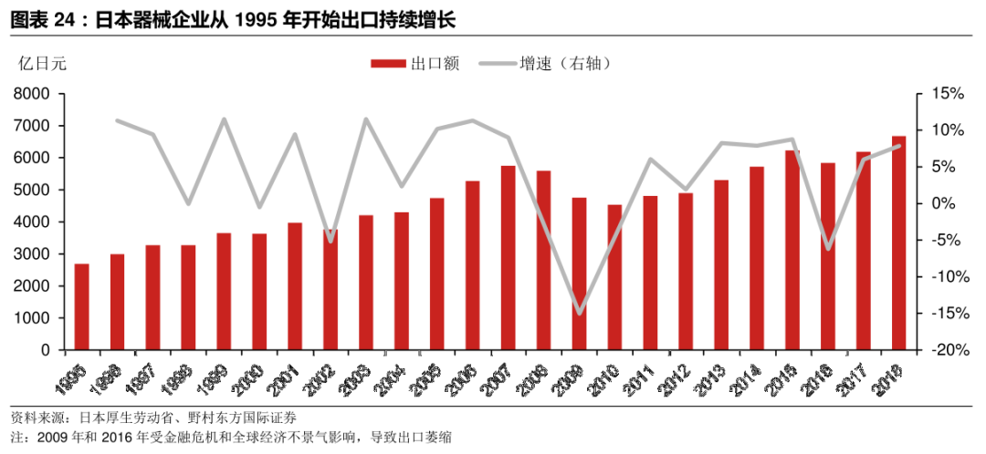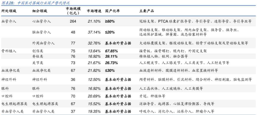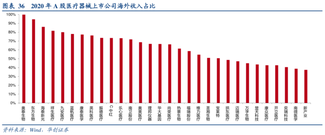 ● 2015年的“722”事件,CXO及药物研发行业受到全面暴击,指数7个月下跌近45%; ● 2011年“安徽模式”下的普药集采,14个月行业指数跌了44%; .... 可以明确感知到的是,每一次市场消化完政策面带来的利空后,都带来全新行情的一个起点,而不能忽略的是,中证医药指数从2006年2000点不到的位置来到了近期的18000点,15年8倍。 有理由相信,中国的医疗行业发展没有理由不会像美国、日本的一样,保持长久而稳定的繁荣,在科技进步、经济繁荣、人类追求更长的寿命和更好的生活质量背景下,产业繁荣,对应的二级市场也同样长牛。在评判国内的控费政策之前,不妨参考一下他山之石-日本。 经济合作与发展组织(OECD)的主要国家中,日本是老龄化最严重且医保控费最严格的国家之一,按28%的老龄化率,仅11%左右的医疗支出比例来自老年人群。对比美国、英国,相应的老龄化率分别为16%、18%,医疗支出比例分别为17%、10% 由此带来的直接结果,是器械企业出海,诞生了一批全球知名的厂商,如奥林巴斯、泰尔茂、岛津等。 从1999-2018年日本器械国内产值的变化和出口数据看,期间出口额从3600亿日元增长到6700亿日元,翻了接近一倍。医保压力促使日本企业转向海外,中国械企在面临控费的背景下拥有更广阔的余地,一方面国内市场足够大、很多领域都处于被外资垄断的局面,国产替代的机会还很多;另一方面企业可以和日本厂商一样寻求出海,提升自身的天花板。 复盘过往国内器械集采的历史,从已经确定了全国集采的冠脉支架、骨科关节领域,其实就能看出日本和中国控费角度的不同,日本是按照药物经济学以及以治疗效果为导向,而中国则更多是以医保资金占用的比例、控费的难易程度进行费用管理。以这个定性指导原则进行审视,那么国产化率高、市场规模的大的细分必然受到医保局的重点关注,因为控费收效高、也更有底气砍出足够便宜的价格。降价只是手段,而不是最终目的。本次安徽的化学发光集采中监管层领导也在强调,不是像仿制药一样从10元降到1元,是合理的降价挤掉中间的水份,保证企业一定的利润。 如果没有价格限制,行业依然能维持暴利,部分厂商小日子过得太舒服,根本没有动力去做创新,在同质化下唯一能动心思的就是通过“增加销售费用输送利益”来实现销售额的增长,进口替代太慢,垄断的局面短期也无法改变,行业会“腐烂”。在投资医疗行业的过程中,部分二级投资者形成了:“药不如械,械不如服务”的观点,一方面基于药械之间创新模式的差异,另一方面源于政策。无论是药还是械,一旦落入集采范围有且仅有两种策略:第二,创新、国际化转型,未来做更多高精尖的东西,用技术形成自己的核心壁垒;选择了第一种策略,意味着公司要被归类到的低估值“无人区”中,市场关注度将持续低迷。如果选择第二种,那么不仅要投入大量的人力、资源和资金,同时公司的研发成果和策略则需要受到市场检验,但起码故事仍有一个雏形。而出海的故事,则是对创新检验的最好的兑现,这意味着公司产品市场天花板全面重构,国内政策影响将被一定程度削弱,减少更多系统性风险。