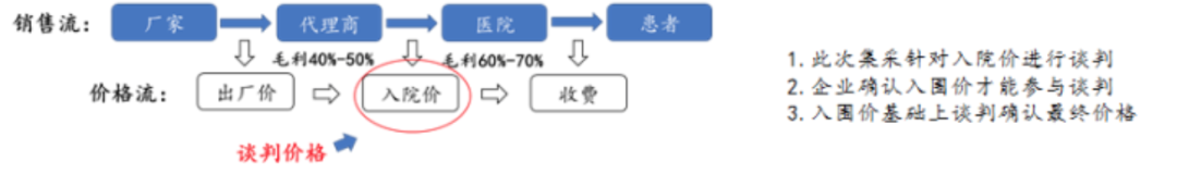 根据流出会议纪要,这次医保局想要实现的是“挤压贿赂中间地带”,所以这次谈判价格选定的是入院价,包括税费与配送费在内。在国内体外诊断行业,以经销模式占主导,这次处于“中间地带”的经销商被精准打击,会产生“没有中间商赚差价”的效果,使整个行业更加透明,销售、售后等职责也将陆续转回到厂家身上。从集采流程来看,谈判之前,专家先设定好一个谈判入围价(应该是贴近过往安徽市场的最低价),再以该价格进行谈判。