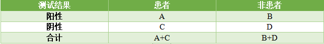 注意:真阳性率(灵敏度)=A/(A+C);假阳性率=C/(A+C);假阳性率=B/(B+D);真阴性率(特异性)=D/(B+D)。