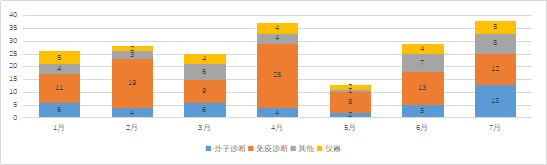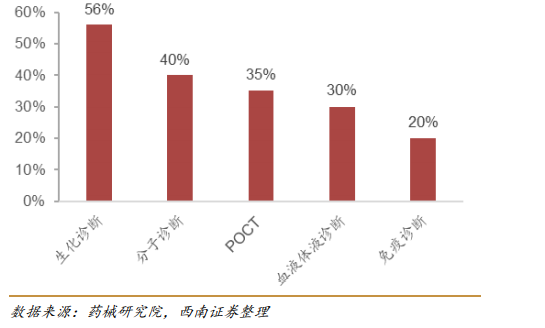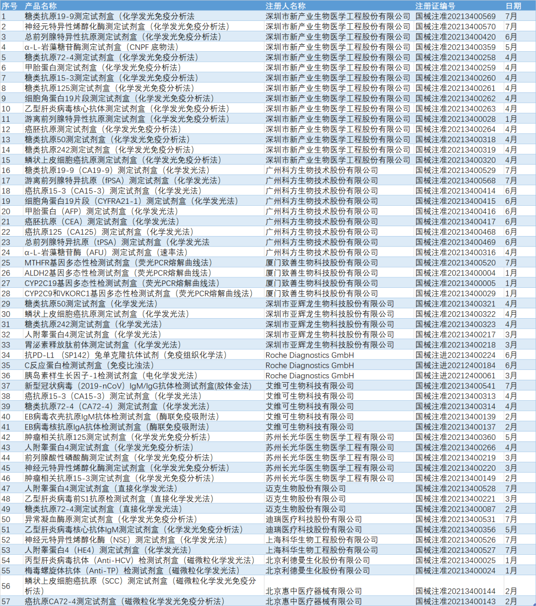 体外诊断(IVD)是指对人体血液、体液、组织等样本经过检测,得到相关临床诊断信息的检测服务,IVD 为临床诊断提供了约 80%的数据。根据第三方的调研数据显示:预计 2019 年全球体外诊断市场规模可达600-700亿美元,近五年复合年增速约为3-5%,未来预计保持 4-6%左右增速。2019年国内体外诊断市场约为650-750亿元,2014-2019 复合年增速约为 20%,国内增速明显高于全球平均。 国内市场增在快速起步的阶段,得益于经济发展,政府支持以及国民医疗意识的增强。目前,从四大家的数据来看,中国是其增长最为高速的市场,相对于全球5-9%的增速,中国市场的增速预估在10-15%。国产品牌因为体量小,所以增速相对较快,预估在20-35%之间。 体外诊断是目前人类疾病诊断,预防和治疗最常用的技术手段,根据临床上所使用的技术不同,目前主要的体外诊断细分领域有免疫诊断、生化诊断、分子诊断、微生物检测、POCT 等。其中免疫诊断占整个IVD市场的近40%,分子诊断占行业份额为15%。在国产化这个赛道上,生化诊断是国产化最高的,分子诊断为40%。 免疫诊断主要分为放射免疫、免疫层析、酶联免疫和法学发光,化学发光具有灵敏度高和高通量快速检测的技术性能,成为引领免疫诊断快速发展的主要技术路径。不同免疫诊断方法学之间的区别在于对抗原抗体进行标记的标记物和测量反应信号的方法不同,化学发光技术的主要优势在于其稳定和自动化程度高,已经成为免疫诊断领域最先进以及被运用最广泛的方法学。 化学发光仪器稳定和试剂数量覆盖主流项目是化学发光企业能够参与市场竞争的先决条件,在此基础上,具备明显竞争优势的厂家不断突破技术壁垒,提升仪器精密度和稳定性,开发特色检测项目,提升原材料自给率,构筑渠道优势。 分子诊断是目前IVD市场发展最为快速的细分领域,因为新冠的影响,虽然目前整个市场处于极度饱和的状态,但是未来分子诊断技术在临床应用的空间会更大,比如生殖健康,感染性疾病,肿瘤伴随诊断等等方面,都还在起步乃至快速发展的阶段,未来还有很大的应用场景待开发。 各种分子诊断技术对比(2019年基因慧) 根据国家药监局的官网披露的数据,2021年1月-7月期间共有626家企业有新品获批,其中2021年1-7月共有共有898个产品获批,其中非VD产品为702个,IVD产品为196个。 每月获批的医疗器械分布 正如分子诊断和免疫诊断是整个体外诊断行业发展最快的那样,在2021年的上半年,共有112家的企业获批了IVD产品,在本次获批IVD产品中,分子诊断和免疫诊断依然占据了很大一部分。具体获批情况如下: 2021年上半年获批IVD产品月度分布情况 2021年1-7月共有来自23家企业的26款IVD仪器获批,其中分子诊断设备主要是以国产为主,免疫诊断等设备进口更多,详情如下: 诊断设备(免疫诊断、生物安全等) 诊断相关仪器(核酸分析) 2021年1月-7月获批的产品中,试剂盒约有140多个,其中免疫诊断等约有100个。获批企业主要是以国产为主,其中进口试剂盒获批约有16个,国内企业试剂盒获批最多企业为新产业,共获15个免疫诊断试剂盒。现将获批试剂盒简列如下: 进口获批试剂盒 国内部分企业获批试剂盒汇总 分子诊断获批试剂盒汇总 作为增长最快的细分市场分子诊断和免疫诊断市场,国内企业增加加速布局,产品上新速度是远远高于进口品牌,近期IVD方向的政策虽然有所变化,比如IVD试剂集采以及各地阳光采购等政策,使得单个区域上的价格保护越来越弱,但是从长期看国内政策的利好期还在持续,国内企业应该加速产品创新以及加快产业的区域布局,加快塑造自身的核心竞争力。 |
