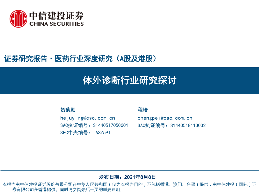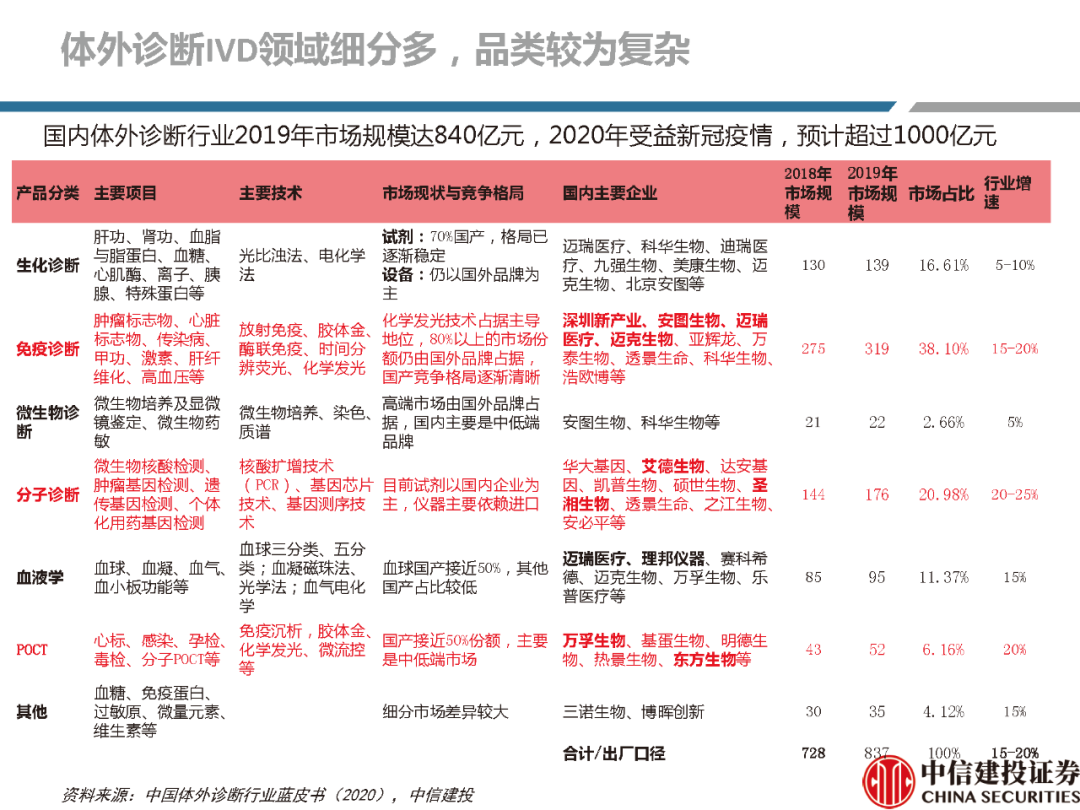 2021-9-13 00:00| 编辑: 沙糖桔| 查看: 10444| 评论: 0|来源: 中信建投证券、IVD资讯