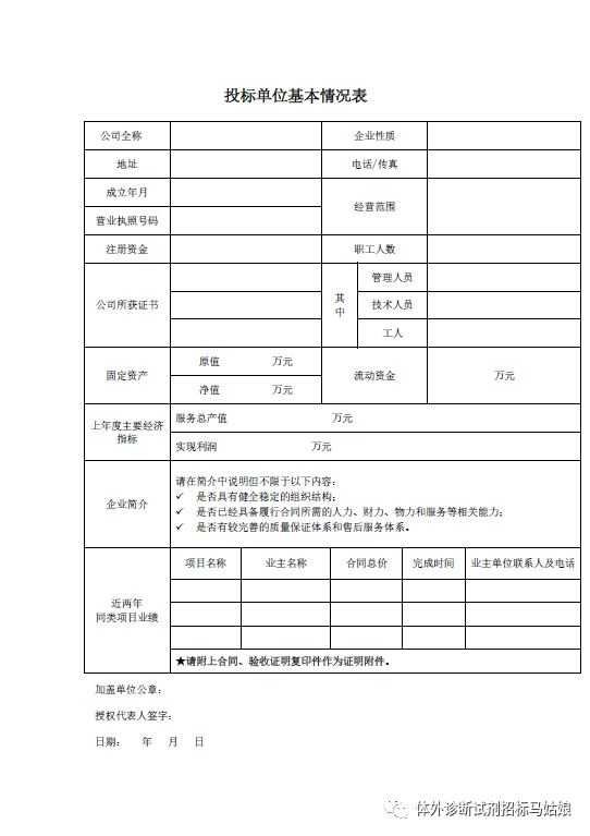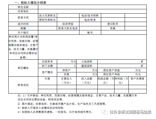 非固有的企业资料包括: ISO【医疗器械届ISO证书科普】 (1)环境管理体系认证证书(ISO14001); (2)质量管理体系认证证书(ISO9001); (3)职业健康安全管理体系认证证书(OSHASI8001); (4)医疗器械质量管理体系认证证书(ISO13485); (5)职业健康安全管理体系认证证书(ISO45001); (6)医学实验室认证证书(ISO15189); (7)参考实验室认可证书(CNAS) 1、银行基本户信息及开票信息(银行基本户信息包括:开户单位,账号,开户行;开票信息包括:单位名称,纳税人识别号,地址、电话,开户行及账号) 2、企业信用报告/征信报告(中国人民银行备案的第三方征信机构出具)(一般找公司的财务部门申请) 3、信用查询(一般是指在“信用中国”网站上进行的政府采购不良行为记录查询,统一社会信用代码查询,失信被执行人查询,重大税收违法案件当事人查询,上信用中国网址查询即可) 4、参加政府采购活动前三年内在经营活动中没有重大违法记录的书面申明(在“中国政府采购网 “上查询“政府采购严重违法失信行为信息记录名单”) 5、国家信用企业公示(年度报告)(在“国家企业信用信息公示系统”查询下载,有年度报告,需管理员下载,财务人员可下载,仅是信息公示可直接下载) 6、纳税信用评级(一般是去“国家税务总局”里的“纳税信用A级纳税人名单”里面查询) 7、完税凭证(找公司财务税务负责人提供) 8、信用中国网站及中国政府采购网信用记录查询报告(“信用中国”网站查询报告一般是“失信被执行人、重大税收违法案件当事人名单、政府采购严重违法失信行为”这三项查询,“中国政府采购网”信用记录查询一般是“政府采购严重违法失信行为信息记录名单”查询) 9、无行贿受贿记录(“中国裁判文书网”无行贿受贿记录截图) 10、 无重大违法犯罪记录声明(看要求是需检察院机关文件,还是需要药监局开局无犯罪记录证明,或者是单位自拟文件,抑或是按招标文件模板即可,需检察院机关开具需要自行到检察院申请,如是药监局开具就要咨询公司相关部门人员去药监局申请,如按招标文件出具就直接出具了) 11、 一般纳税人或小规模纳税人证明文件(出示增值税纳税申报表12月的总表即可(适用于一般纳税人)) 12、 近两年的财务报表(提供汇总报表数据即可)(就提供“合并的资产负债表、合并利润表、合并现金流量表”,看公司的年度审计报告就有)【新成立公司提供成立至今的月或季度财务报表复印件)或银行出具的资信证明;】 13、 依法缴纳税收和社会保障资金证明(依法缴纳税收可以提供公司增值税纳税申报表,广州个人社保参保证明可以在广州人力资源和社会保障局官网自行打印哦,其他地区可以咨询当地人社部或者百度一下哦。) 14、 汇款凭证(以电汇方式汇款,可以找单位申请对公付款,找财务部拿电汇底单,一般财务会有一个电子版的对公转账付款回单;以网银方式转账汇款,可以用私人账户的网上银行APP转账,在网上银行APP导出电子凭证) 15、 企业简介及品牌知名度介绍(企业简介可以有几种形式,文档表格版、文档文字介绍版、PPT简介版。文档表格版马姑娘会附上一个简单的格式以供参考,文字介绍版主要分几段说明一下公司的发展史、内外情况、软硬实力及销售业绩等,PPT简介可以做的华丽一些,这是公司市场部编辑的,我就不用多说了) 16、 厂家资格声明(按模板自行填写企业信息、财务数据信息、销售额业绩等数据) 17、 主要股东或出资人信息(找公司财务部门出具。主要内容包括股东名称、股东类型、身份证号码/统一社会信用代码、出资额、占全部股份比例) 18、 企业年度报告(财务提供) 19、 企业荣誉证书 20、 证明能力或业绩的材料(公司年度报告摘要,企业奖项荣誉专利证书,公司出具的书面业绩证明【指明销量及销售额】,投标业绩承诺函、发票合同业绩一览表,并附上相应的合同发票及中标通知书)