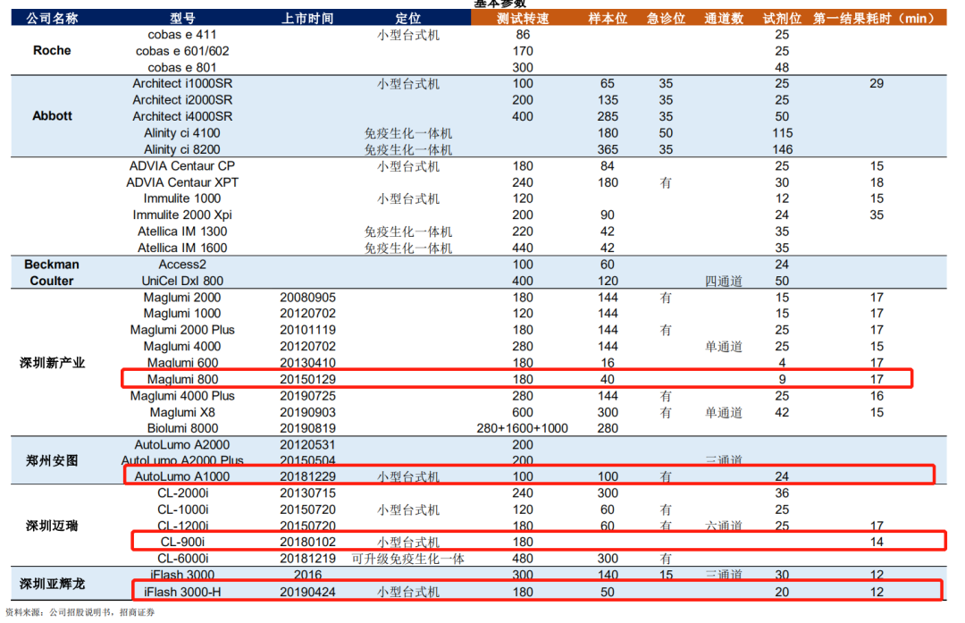 01 国家医改重点:推动医疗资源下沉, 基层医院及社区医院的建设,催生百亿级别市场需求 《2019 年我国卫生健康事业发展统计公报》显示:全国医疗卫生机构的数量达99.4万个,其中基层医院就有94.3万个。 2021年5月,民政部发布了的数据显示:截止到2021年4月,全国(不包括中国香港、澳门、台湾省)有1870个县级行政区划。 2021年6月,国家卫健委下发《关于加快推进社区医院建设的通知》,拟于年底前再推进建成500家左右社区医院,切实巩固提升县域医疗卫生服务能力和水平。 ▲《2019 年我国卫生健康事业发展统计公报》 ▲2019年中国县域GDP等级分布 ▲2016年-2019年中国县域住户储蓄存款余额 ▲2016-2019年中国县域户籍人口数量 随着中国城镇化的速度加快,县域户籍数量在逐年降低,但是县域住户的存款余额却是逐年上涨的,所以,中国县域市场的消费能力较以往有大大的提升。医疗资源的下沉有着坚固的经济基础。 02 中国体外诊断市场发展速度高于全球, 但产品同质化现象愈发严重 体外诊断(IVD)为临床诊断提供了约 70-80%的数据。根据第三方的调研数据显示2019年国内体外诊断市场约为650-750亿元,2014-2019 复合年增速约为 20%,国内增速明显高于全球平均增长速度。 罗雅贝西的全球数据来看,中国市场是全球市场中最有活力且高速增长的市场,相对于全球5-9%的增速,中国市场的增速预估在10-15%。而对于国产企业来说,因为体量小,所以增速相对较快,预估在20-35%之间。 按照检测原理和方法划分,体外诊断可主要分为生化诊断、免疫诊断、分子诊断三大类。上述三类的测定原理与主要应用如下: 目前,在二级以上的医技科室主要还是以大发光为主,其中进口品牌主要为罗氏,贝克曼,雅培以及西门子。国内企业主要还是以新产业,亚辉龙、迈瑞、安图生物等为主。这些大发光的通量都在200测试/小时以上。如果跟流水线搭配的话,测试速度将会更快。这些大发光平台的试剂都是大包装,开机成本和维护成本都不低。 ▲大发光主力机型及基本参数 所以,这样的大通量检测仪器并不是适合所有的医院,特别是对于县域市场、社区等基层医院来说,如果配有这样高通量设备的能力,产出很可能都养活这样的仪器。大发光厂家也了解县域市场不可放弃,所以小发光以及单人份发光产品应运而生。今天我们来重点分析一下单人份发光。 03 单人份发光市场进入创新期, 群雄逐鹿格局,巨头并未形成! 首先单人份发光并不是一个新的技术类别,是依据试剂包装类别来进行分类的,与大发光的集约化瓶装试剂不同,单人份发光更多的是独立试剂条,可以灵活上机,目前常见最大上机样本量通常在60-80个样本/小时 以内,有企业将通量做到了200个样本/测试。 ▲单人份发光企业举例 |