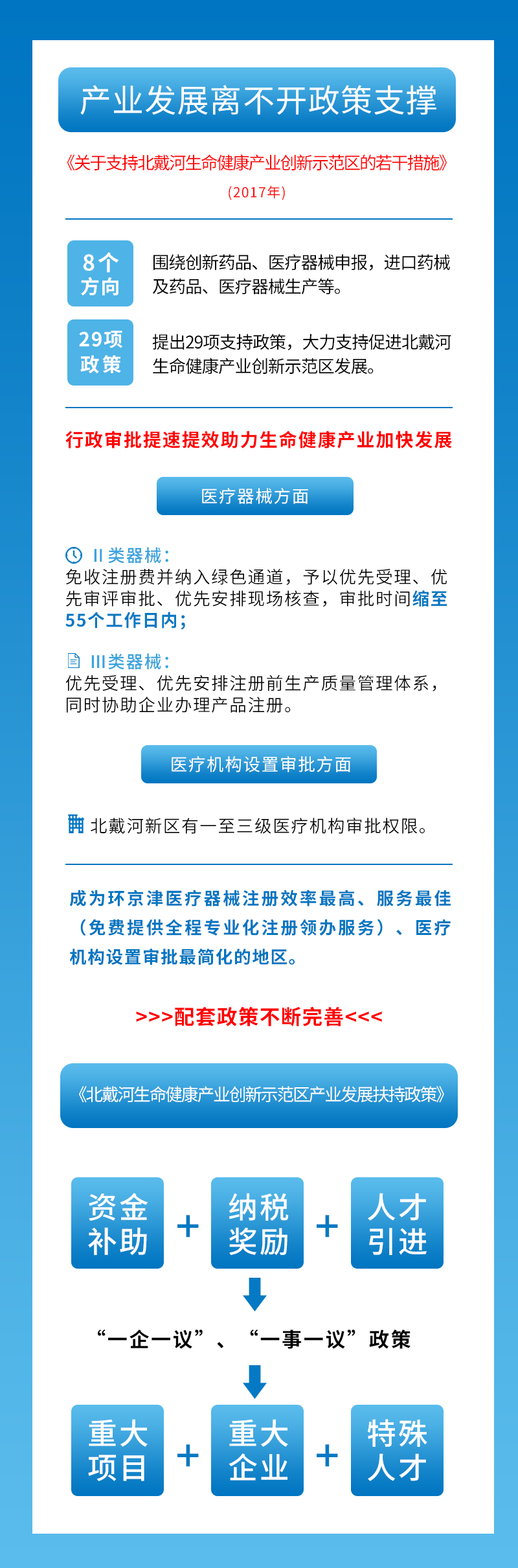 为深入贯彻实施《“健康中国2030”规划纲要》,6月10日,全国大健康产业园共同体成立大会暨签约仪式在北京隆重举行。 会上,河北北戴河生命健康产业创新示范区、海南博鳌乐城国际旅游先行区等12家园区共同发起组建全国大健康产业园区共同体,签订《全国大健康产业园共同体首期战略合作框架协议》,并联合发布“共同体宣言”作为共同体纲领性行动指南。 “全国大健康产业园共同体”的成立,是探索具有中国特色大健康产业园区发展新模式与引领全球大健康产业发展的有力举措。北戴河生命健康产业创新示范区作为“全国大健康产业园共同体”的发起成员单位之一,将与其他园区一起,共同探索我国大健康产业园管理方式,建立符合国际标准规范的大健康医疗产业园区运营规则。优化大健康产业资源配置,激发社会活力,完善行业自律及监督,营造公平竞争、协同发展良好环境;创新大健康产业园区发展方式,建立健全符合国际通行规范的大健康产业园区发展规则,形成中国特色大健康产业园区发展模式。 全球范围来看,以人的健康为服务目标的生命健康产业是具有巨大市场潜力的朝阳产业,正在成为世界各国国民经济的一个重要支柱产业。 深入领会《“健康中国2030”规划纲要》提出的全民健康发展新目标,加快生物医药和大健康产业基地建设作为实施“健康中国”战略重大平台。 国家战略平台 全力打造国家级生命健康产业创新示范区 当前,《“健康中国2030”规划纲要》已成为推进健康产业发展的行动纲领,也是我国积极参与全球健康治理、履行我国对联合国《2030可持续发展议程》承诺后的重要举措。 “没有全民健康,就没有全面小康。” “经济要发展,健康要上去,人民的获得感、幸福感、安全感都离不开健康。” 北戴河新区以创新思维、创新实践勇担健康中国建设使命。 区位优越 全力打造京津冀最美医疗旅游目的地 在国家“南有博鳌、北有北戴河”生命健康产业发展战略布局下,北戴河生命健康产业创新示范区作为推进京津冀协同发展战略、环渤海地区合作发展战略、承接北京非首都功能疏解重要区域,发展生命健康产业有着得天独厚的基础优势。 生态资源富集: 地处示范区核心区的北戴河新区位于秦皇岛西南部,北临戴河,南接滦河,西起京哈铁路和沿海高速公路,东至渤海海域。 北戴河新区气候宜人,冬无严寒,夏无酷暑,拥有被誉为“中国最美八大海岸之一”的黄金海岸。 区位优势显著: 北戴河新区拥有优势的区位、便利的交通,将成为环京津最美的旅游度假目的地。 医疗资源聚集 全力打造国家区域医学中心 北戴河生命健康产业创新示范区获批以来,充分依托北戴河区域生态、区位、政策优势,瞄准“健康中国”战略这一决战决胜全面小康重要基础性民生工程,全力培育发展医疗、康养产业,率先建成北戴河生命科学园。 政策叠加 全力打造环京津最美产业发展新高地 产业发展离不开政策支撑。国家、河北省、秦皇岛市支持北戴河新区生命健康产业发展已形成一整套完善的政策支持体系。 国家级生命健康产业创新示范区具有“一事一议、先行先试”政策优势,可在医疗新技术、新药品、新器械审批准入等方面进行改革创新、率先突破,为发展生命健康产业提供有力支撑。 2021年,北戴河国家生命健康产业创新示范区获批5周年,也是北戴河新区全面开启持续深入推进生命健康产业更好更快发展“二次创业”攻坚之年。 打造环京津最美产业发展新高地: 5月份,北戴河生命健康产业创新示范区医美产业发展论坛在上海召开。 秦皇岛市人大常委会副主任、党组成员,北戴河新区管委主任彭云在与嘉宾分享的论坛发言中表示,医美产业作为“颜值经济”的新风口,发展前景广阔。北戴河新区将瞄准行业需求,推动医美服务业、制造业快速发展。 积极探索培育生命健康制造业,北戴河新区把医疗器械产业作为生命健康产业发展核心产业之一,在区内高起点高水平规划发展医疗器械产业园区,总规划面积5.63平方公里,目前已收储并落实工业用地指标1000亩。 河北省医疗器械与药品包装材料检验研究院分院,将落户开展以IVD试剂为主的医疗器械检验服务,辐射带动冀东乃至全省医疗器械注册检验提升;医疗器械产业港一期工程已建成,将开展研发、中试、技术咨询相关服务,形成全产业链服务平台。 |