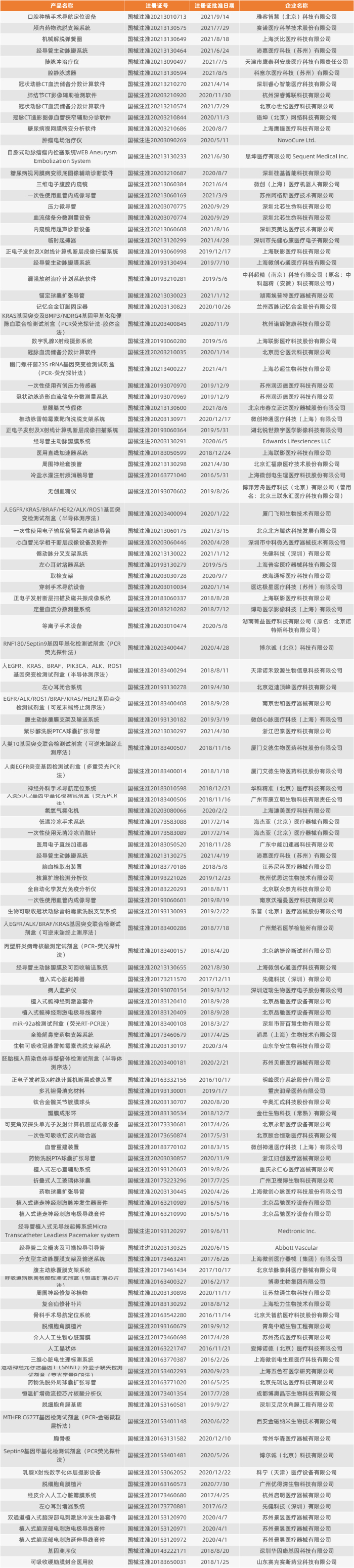 我国医疗器械发展起步较晚。限于当时的工业基础、原材料水平、医学水平以及医生创新意识,并未研制出具有原创性、创新性的医疗器械产品。早期的医疗器械大多数都是国外产品的模仿。当然,这种情况其实在全球相当普遍。所谓“模仿是创造的第一步,是学习的最初形式”,模仿是人类学习、掌握技能的重要方法之一。在世界国家发展史上,许多的强国早期都是通过模仿,在此基础上进行创新,最后再实现超越。随着技术水平和经济水平的不断发展,我国已经开始在各个行业崭露头角,涌现出自主创新,甚至出现领先世界的产品。尤其在高端医疗器械领域,我国在近年提出了“国产替代”的概念。2014年2月7日,国家食品药品监督管理总局发布了《创新医疗器械特别审批程序(试行)》(食药监械管〔2014〕13号)(下文简称试行创新程序),自2014年3月1日起施行。作为我国第一个专门针对创新器械设置的审批通道,在确保上市产品安全、有效的前提下,可以加速创新器械审批速度。该程序是是国家总局为促进医疗器械创新发展而推出的重要措施,对鼓励医疗器械的研究与创新,促进医疗器械新技术的推广和应用,推动医疗器械产业发展起到了积极作用。除了知名度和美誉度,相关机构还会采取早期介入、专人负责及全程指导的方式,在标准不降低、程序不减少的情况下予以优先审评审批,从而极大加速医疗器械的审批速度,对于企业来说意义重大。当然,要想享受便利,则需要自身产品具有足够水平。试行创新程序明确规定了医疗器械必须满足专利、性能和定型三个条件才能申请创新医疗器械特别审批。尤其是性能方面,要求产品主要工作原理或作用机理为国内首创,技术上处于国际领先水平且性能或者安全性与同类产品比较有根本性改进,并且具有显著的临床应用价值。2018年,受国际环境影响,我国高新技术的发展受到了影响。中国高性能医疗器械产业作为《中国制造2025》十大重点发展领域之一也受到了牵连。根据《中国制造2025》,高性能医疗器械产业包括影像设备、医用机器人等高性能诊疗设备;全降解血管支架等高值医用耗材;可穿戴、远程诊疗等移动医疗产品;生物3D打印、诱导多能干细胞等新技术。受此影响,结合试运行几年来的实际情况,NMPA正式发布更新后的《创新医疗器械特别审查程序》,于2018年12月1日起正式实施替代原来的试行创新程序。相比之前,新规对于创新医疗器械的“创新”提出了更加严格的要求,不仅规定了专利的具体时间,更要求企业通过专利机构的评审来证明自身产品的“创新”。新规的颁布,加上资源的扶持,我国创新医疗器械在最近一两年开始呈现井喷态势。根据动脉网对行业专业人士的了解,创新医疗器械近年的高速增长主要有三个原因。第一,医疗器械创新环境相比以往更好。为了推动医疗器械创新,我国近年来提供了更好的政策支持,推动更多的人才和资金聚集;相比以往,全球供应链体系也更加完善。第二,内在需求的提升。随着生活水平的提升,人们愿意且有能力选择与生命攸关的医疗器械;同时,对品质医疗也有了更高追求。巨大的内在需求驱动了医疗器械创新的快速发展。目前,我国医疗器械行业还存在很大的成长空间。相比美国市场1∶1的药械比,我国药械比高达3∶1。正因为此,我国医疗器械市场过去几年的发展速度一直是医药市场成长速度的两倍以上。因此,中国创新医疗器械未来有着巨大的增长空间。第三,相比以往,资本市场对医疗器械进一步认可。由于IPO通道顺畅,整个行业呈现良性发展。越来越多的资本开始关注医疗器械创新,这也进一步促进了其发展。层出不穷的创新又吸引了更多的投资机会,初步实现正向循环。 累积346款创新医疗器械进入审批, 近年呈现快速增长 根据动脉网的统计,截至2021年9月23日,共有346款医疗器械进入了创新医疗器械审批程序。2017年曾有64款创新医疗器械进入审批程序,是迄今为止的巅峰。需要说明的是,根据医疗器械审批的规定,有部分最终拿到医疗器械证书的创新医疗器械被分拆为两张证书。即有可能一个创新医疗器械或批对应两张NMPA证书。为了方便统计,此种情况我们将一律按照两个获批来计算。2019年是修订后新规开始实施的第一年,创新医疗器械审批数量相比前一年出现了下降。显然,这是对创新要求更为严格的新规影响所致。不过,这本来也是新规的本意,通过更为严格的要求推动企业在创新上下更多的功夫。近两年来,进入创新医疗器械审批程序的创新医疗器械数量开始呈现快速增长状态。2020年上半年进入创新医疗器械审批程序的器械数量仅有18款,且节奏并未因为疫情受到太多影响。然而,NMPA在下半年完成了多达35款创新医疗器械的审批,接近2019年全年的审批量。2021年,这种增长状态正在持续,截至9月已完成42款创新医疗器械的审批。按照前三季度的审批量,最差的情况下2021年全年也将与去年持平。按照企业所在地区进行分类,历年来通过创新医疗器械审批程序最多的前五位地区分别是北京(66)、上海(58)、广东(56)、江苏(46)和浙江(26)。我国高端医疗器械的分布聚集地由此一目了然。尤其是长三角地区合计总量达到130款,占历年审批总量的37.6%之多。作为对比,进口的创新医疗器械审批数量也达到了45款,也可以进入前五排名。进口创新医疗器械进入审批,一方