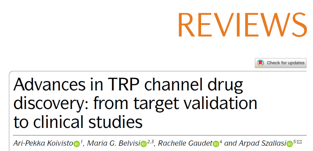 此外,多家生物医药公司也在开发抑制TRPV1受体活性的药物。此类药物在开发时会面对一个主要挑战:因为TRPV1受体也介导由高温带来的疼痛,因此一旦抑制TRPV1的活性,就会让人对高温不敏感,容易烫伤(比如去拿一个装有开水的杯子却不自知)。解决这一挑战的重要策略之一,是精准地把药物递送到产生疼痛的局部组织。TRPM8也是一个潜在的止疼靶点。在人类中的研究发现,如果TRPM8的表达量较低,偏头痛的风险也会下降,且更不容易感受到寒冷带来的疼痛。这些观察结果表明针对TRPM8的小分子拮抗剂可能是治疗相应疼痛的潜在疗法。在一些研究中,选择性的强力TRPM8拮抗剂已经证实了其安全性,如AMG-333与PF-05105679等潜在疗法也已经进入了临床试验。不过此类药物可能会触发身体的低温反应,因此在临床应用上还有不少的路要走。这篇综述文章指出,除了TRPM8拮抗剂,TRPM8激动剂也有潜在的止疼潜力,有待新药研发人员们去探索。