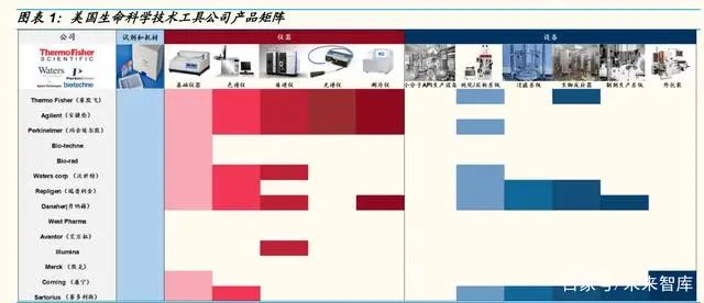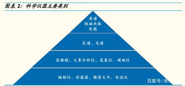 科学仪器是国民经济高质量发展和基础科学创新的基础 生命科学技术工具包含用于学术研究和生命科学产品工业化过程中涉及到 的实验消耗品、分析工具、仪器和大型设备,应用于实验室、医疗诊断、 药物生产等多个场景,涉及多个学科交叉应用,是生命科学产业供应链中 的基石,一切研究生产都需要依赖工具进行。 科学仪器是国际生命科学工具巨头的重点布局领域。我们把生命科学技术 工具分为试剂和耗材、仪器、设备三大类,下设具体十二个小类进行划分, 对海外十四家上市公司进行产品梳理并绘制成产品矩阵。通过矩阵可以看 出,国际巨头生命科学工具公司(例如丹纳赫、赛默飞、安捷伦、赛多利 斯)几乎贯穿整条产业链。其中,科学仪器是各国际巨头重点布局的领域 之一。 除了服务于生命科学领域,科学仪器在国民经济高质量发展,以及重大基 础科学创新中都扮演了极为重要的角色。美国商务部数据显示,仪器仪表 工业总产值只占工业总产值的 4%,但对国民经济的影响达到 66%。在科 研领域,科学仪器是科学创新的基础条件。据统计,截止 2017 年,诺贝 尔奖自然科学获奖项目中,因发明科学仪器而直接获奖的项目占 11%。而 且 72%的物理学奖、81%的化学奖、95%的生理学或医学奖都是借助尖端 科学仪器来完成的。 市场规模。根据 SDI 数据显示,2015 年,全球分析仪器市场规模已达 513.67 亿美元,2020 年估计为 637.5 亿美元,5 年 GAGR 4.4%。中国 2015 年科学仪器占全球市场约 10%。 科学仪器具体包括:质谱、核磁共振、电镜、色谱、光谱、显微镜、元素 分析仪、氨氮仪、碳硫仪、辐射仪、传感器、精密天平、电流仪。其中色 谱、光谱和质谱等是原子和分子在定性和定量分析中的主要工具。色谱和 光谱分别擅长定量和定性分析;质谱得益于可以直接测量物质原子量、分 子量,在对灵敏度、精度有很高要求的定性、定量分析上具有很大优势。 质谱仪具有高灵敏度、高分辨率等优势,在科学仪器中具有极高的行业地 位。质谱 (MS) 是一种强大的分析工具,在各行各业有着广泛应用。在医 药和生命医学领域,质谱的高灵敏度和高分辨率为药物和生物系统复杂代 谢物的分析开辟了新的领域。与其他技术相比,质谱只是一种测定分子量 的技术,通过它我们可以预测分子式。它基于样品转化为电离状态,是否 碎裂,然后通过其质荷比 (m/e) 进行识别。质谱提供了丰富的元素信息, 是解释复杂混合物成分、未知化合物结构解析的重要工具。质谱还有助于 元素定量分析,即质谱信号的强度与相应元素的百分比成正比。它还可以 与色谱联用进行更高灵敏度的检测,如 LC-MS、GC-MS 和 LC/MS/MS 等。 中国科学仪器产业潜力大 海外企业在全球科学仪器行业中长期处于领先地位。根据美国化学会 C&EN 发布 2018 年度全球科学仪器品牌 TOP20 主要都是海外企业。其中, 美国赛默飞(Thermo Fisher Scientific)仪器板块销售额达 63.3 亿美元, 排名第一;日本岛津公司排名第二,销售额 21.8 亿美元,仅为第一名的 1/3。 国内产业政策持续支持 高端仪器供应链国产化空间潜力大。根据智研咨询统计,2018 年中国质谱 仪市场规模为 111.93 亿元,国内厂商在中国质谱仪市场的占有率仅为 14.40%。政策支持是我国国产高端科学仪器从无到有取得不错发展的重要 因素。 顶层设计方面:科学仪器始终是我国五年发展规划中的重要板块,在“十 三五”和“十四五”期间,国务院陆续出台多项政策,包括但不限于《“十 三五”国家科技创新规划》、《“十三五”国家战略性新兴产业发展规划》、 《仪器仪表行业“十三五”发展规划》、《中华人民共和国国民经济和社会 发展第十四个五年规划和 2035 年远景目标纲要》等。 专项资金支持方面:为提高我国科学仪器设备的自主创新能力和自我装备 水平,支撑科技创新,服务经济和社会发展,自科技部、财政部 2011 年首 次启动“国家重大科学仪器设备开发专项”以来,科技部、财政部、发改 委、工信部、自然科学基金等持续加大对科学仪器领域的政策支持力度。仅2011 年专项经费支持力度达 7.7 亿元。此后,一系列“国家重大科学仪 器设备开发专项”持续推出,成为助力国内科学仪器发展的重要力量。 色谱原理及分类