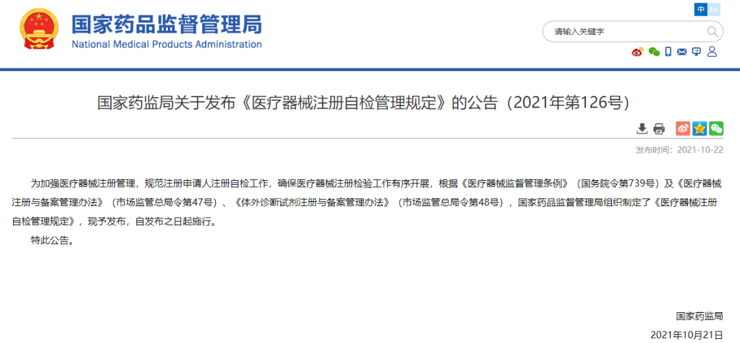 10月22日,国家药监局发布了《医疗器械注册自检管理规定》(以下简称“规定”)。【点击“阅读原文”即可下载原文件】 《规定》分为自检能力要求、自检报告要求、委托检验要求、申报资料要求、现场检查要求和责任要求六部分,明确了注册人应当具备自检能力的总体要求,从人员、设备和环境设施、样品管理、检验质量控制、记录的控制等方面提出了细化要求,确保了开展自检的注册申请人真正有能力保障自检工作质量。 同时,《规定》对首次注册、变更注册和延续注册时提交报告形式要求、签章要求、产品检验型号覆盖要求、委托检验要求、提交资料要求和现场检查要求进行了明确,并提供了自检报告模板,可以有效指导并规范注册申请人出具自检报告活动。 值得注意的是,医疗器械注册时提交的产品检验报告,是医疗器械设计验证的重要评价资料。《医疗器械监督管理条例》(国务院令第739号,以下简称《条例》)明确提出,医疗器械注册时提交的产品检验报告可以是医疗器械注册申请人/注册人或者备案人的自检报告,也可以委托有资质的医疗器械检验机构出具的检验报告,这是医疗器械注册工作要求的重大调整。 作为《条例》重要的配套规范性文件,文件的发布,既是落实党中央、国务院关于医疗器械产业创新发展的重大举措,也符合国务院“放管服”要求和产业发展需要,强化了注册人作为第一责任人的责任落实,有利于进一步引导医疗器械行业高质量发展。对此,《规定》明确了“委托生产的注册申请人可以委托受托生产企业开展自检,并由注册申请人出具相应自检报告。” 重点摘要 自检能力要求 (一)总体要求 注册时开展自检的,注册申请人应当具备自检能力,并将自检工作纳入医疗器械质量管理体系,配备与产品检验要求相适应的检验设备设施,具有相应质量检验部门或者专职检验人员,严格检验过程控制,确保检验结果真实、准确、完整和可追溯,并对自检报告负主体责任。 (二)检验能力要求 1.人员要求。注册申请人应当具备与所开展检验活动相适应的检验人员和管理人员(含审核、批准人员)。注册申请人应当配备专职检验人员,检验人员应当为正式聘用人员,并且只能在本企业从业。 检验人员的教育背景、技术能力和数量应当与产品检验工作相匹配。检验人员应当熟悉医疗器械相关法律法规、标准和产品技术要求,掌握检验方法原理、检测操作技能、作业指导书、质量控制要求、实验室安全与防护知识、计量和数据处理知识等,并且应当经过医疗器械相关法律法规、质量管理和有关专业技术的培训和考核。 检验人员、审核人员、批准人员等应当经注册申请人依规定授权。 2.设备和环境设施要求。注册申请人应当配备满足检验方法要求的仪器设备和环境设施,建立和保存设备及环境设施的档案、操作规程、计量/校准证明、使用和维修记录,并按有关规定进行量值溯源。 开展特殊专业检验的实验室,如生物学评价、电磁兼容、生物安全性、体外诊断试剂实验室等,其环境设施条件应当符合其特定的专业要求。 3.样品管理要求。注册申请人应当建立并实施检验样品管理程序,确保样品受控并保持相应状态。 4.检验质量控制要求。注册申请人应当使用适当的方法和程序开展所有检验活动。适用时,包括测量不确定度的评定以及使用统计技术进行数据分析。 鼓励注册申请人参加由能力验证机构组织的有关检验能力验证/实验室间比对项目,提高检测能力和水平。 5.记录的控制要求。所有质量记录和原始检测记录以及有关证书/证书副本等技术记录均应当归档并按适当的期限保存。记录包括但不限于设备使用记录、检验原始记录、检验用的原辅材料采购与验收记录等。记录的保存期限应当符合相关法规要求。 (三)管理体系要求 注册申请人开展自检的,应当按照有关检验工作和申报产品自检的要求,建立和实施与开展自检工作相适应的管理体系。 自检工作应当纳入医疗器械质量管理体系。注册申请人应当制定与自检工作相关的质量管理体系文件(包括质量手册、程序、作业指导书等)、所开展检验工作的风险管理及医疗器械相关法规要求的文件等,并确保其有效实施和受控。 (四)自检依据 注册申请人应当依据拟申报注册产品的产品技术要求进行检验。检验方法的制定应当与相应的性能指标相适应,优先考虑采用已颁布的标准检验方法或者公认的检验方法。检验方法应当进行验证或者确认,确保检验具有可重复性和可操作性。 对于体外诊断试剂产品,检验方法中还应当明确说明采用的参考品/标准品、样本制备方法、使用的试剂批次和数量、试验次数、计算方法等。 (五)其他事项 1.委托生产的注册申请人可以委托受托生产企业开展自检,并由注册申请人出具相应自检报告。受托生产企业自检能力应当符合本规定的要求。 2.境内注册申请人所在的境内集团公司或其子公司具有通过中国合格评定国家认可委员会认可的实验室,或者境外注册申请人所在的境外集团公司或其子公司具有通过境外政府或政府认可的相应实验室资质认证机构认可的实验室的,经集团公司授权,可以由相应实验室为注册申请人开展自检,由注册申请人出具相应自检报告。 |