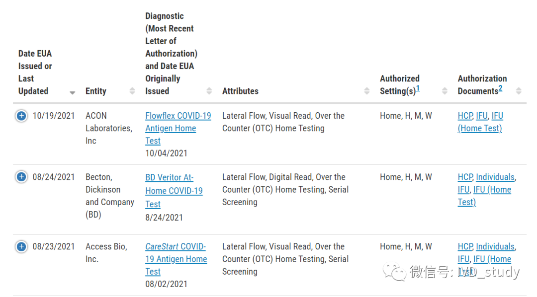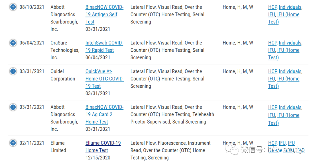 注:官方最新新闻更新一共有9款抗原产品获EUA OTC批准,数据库搜索只查询到8家,且雅培2个。 最后,从FDA数据上看,家庭自检的产品相比获得EUA批准的试剂依然是少数,市场供不应求,依然留有后续的市场空间。尤其后续新冠逐渐流感化,呼吸道感染高发期,可想而知。 信息来源:FDA官方网站 |