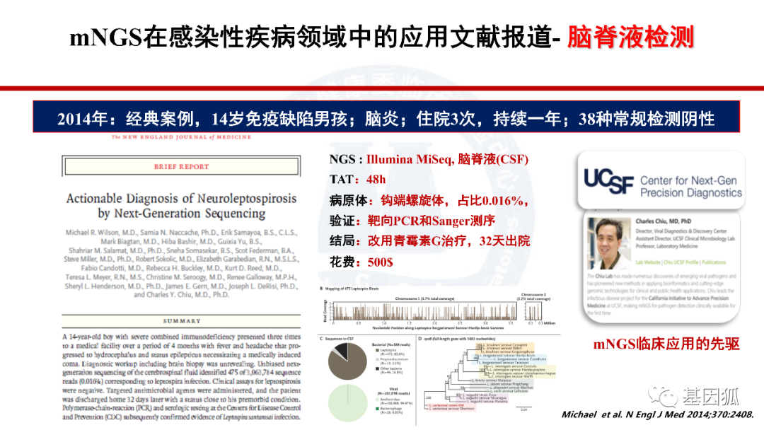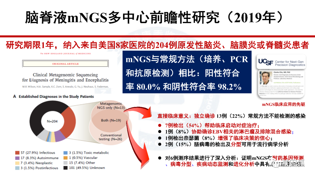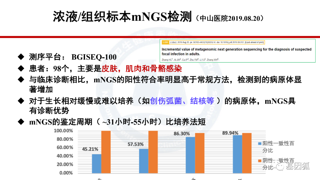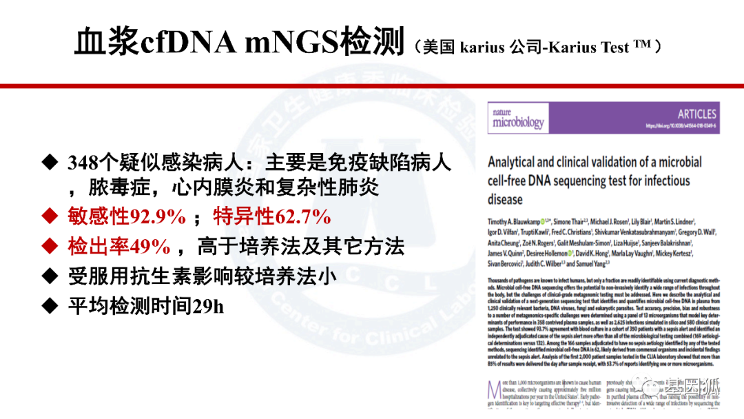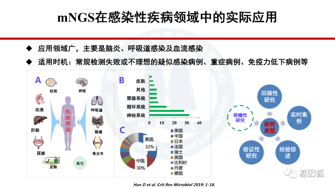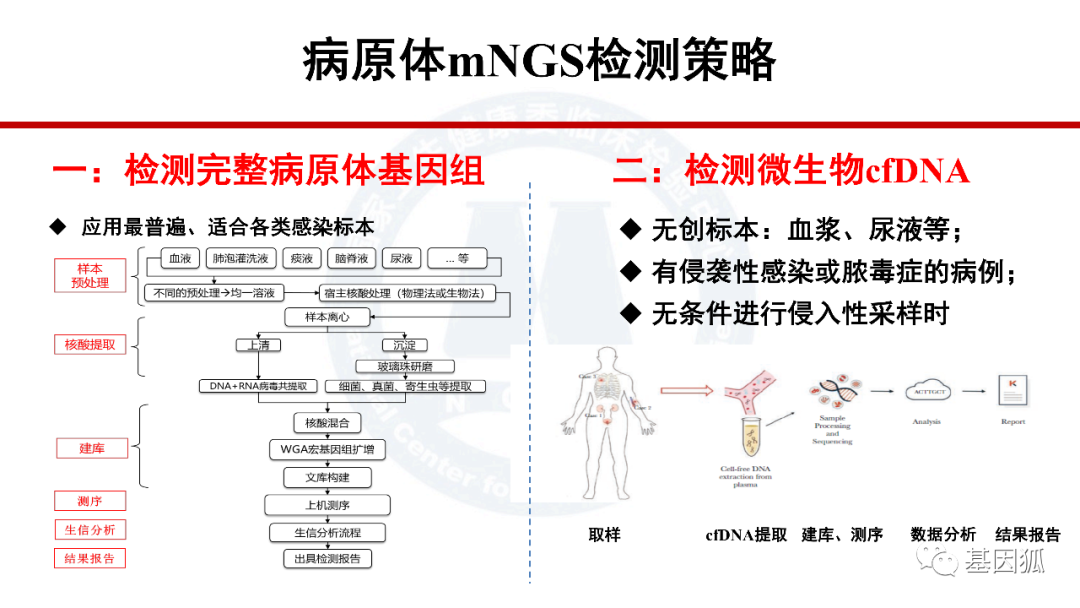 导言 感染性疾病一直是全球范围内的重要公共卫生问题。在其诊疗中,快速、准确地识别病原体至关重要。传统检测方法主要包括形态学检测、培养分离、生化检测、免疫学和核酸检测等,操作简单、检测成本相对较低,同时具有较好的灵敏度和特异度,目前临床仍然广泛应用。然而,传统检测方法耗时较长,加之感染性疾病的病原体种类繁多,仅能针对几种常见病原体进行检测,且检测项目很大程度上依赖临床医师的判断,因此难以识别未知或罕见的病原体。 随着测序技术的飞速发展,新一代高通量测序(NGS,next-generation 2016年,mNGS检测技术正式在中国临床上开始使用,并迅速成为临床病原微生物精准诊断领域「炙手可热」的焦点。但同时也要看到,mNGS不仅给我们提供了许多答案,还给我们提出了很多问题。比如人源DNA的干扰、参考数据库的完善、阳性判断的cut-off值、室内质量的控制、测序检测的费用等问题。 mNGS对于新发或少见病原微生物的检出具有重要价值。但是从成本效益考虑,轻症感染以及使用传统检测方法能够明确诊断的感染,如尿路感染、皮肤软组织感染,不推荐使用mNGS检测。 从技术本身的局限性考虑,人源性细胞较多或背景菌较多的感染标本,如粪便标本,也不太推荐使用mNGS检测。mNGS技术的主要临床适应症如下: 1、重症感染的诊断 2、慢性感染的诊断 慢性感染通常反复发作,较难治愈。由于慢性感染的症状不典型,机体间断性排菌,临床实验室检测困难。 3、疑难复杂感染的诊断 因为mNGS检测技术具有无偏倚性和全覆盖性,对疑难感染病例诊断具有重要作用。 4、免疫缺陷患者感染的诊断 免疫缺陷患者容易发生机会致病菌感染和混合感染,而且感染的病原体复杂多样,诊断困难。而mNGS不受免疫抑制程度的影响,具有良好的诊断潜力。 同时需要注意的是,临床标本中人源细胞占比越高,mNGS检测灵敏度越低。一般而言,人源细胞占比由少到多的顺序是:脑脊液<肺泡灌洗液<血浆<痰液<胸腹水。即使是同一种类型的标本,若来源于不同个体,或来源于同一个体不同取材方法或不同取材时间,人源性细胞的比例都会相差几个数量级。有些标本如粪便、坏死组织等,因背景太杂,在目前的技术背景下不适合做mNGS检测。 mNGS检测技术弥补了传统病原学检测方法的不足,在感染性疾病的诊断中显示出巨大的临床应用价值,已被多个指南和共识推荐。同时,mNGS临床应用仍面临一些问题,需要不断完善,如:标本的采集、核酸提取、基因文库构建、试剂选择、测序数据量和生物信息分析标准化等等。另外,mNGS检测成本较高,外送检测周转时间较长。且mNGS作为一种新型检测方法,阳性结果仅代表临床标本中检出某病原体的核酸片段,无法确定该病原体与感染之间的关系,在有条件的情况下,还应用其他方法或者感染相关的标志物进行相互验证。因此,mNGS尚不宜作为常规检测技术,需要掌握适应症。 随着测序技术的发展以及越来越多的医院临床实验室自主开展mNGS检测,建立规范化检测流程和结果判读标准已成为业内专家的共识。预计在未来几年内,mNGS操作将更加自动化,流程更加标准化,成本亦将显著降低,有望成为感染性疾病病原学诊断的常规检。 那么,mNGS在临床中的实际应用如何?在临床实验室中又面临着怎样的挑战?如何克服这些挑战?今天给大家带来的是国家卫健委临床检验中心李金明老师关于《mNGS的临床应用:目前的关键问题及对策思考》的培训课件,希望对大家有所帮助。 |