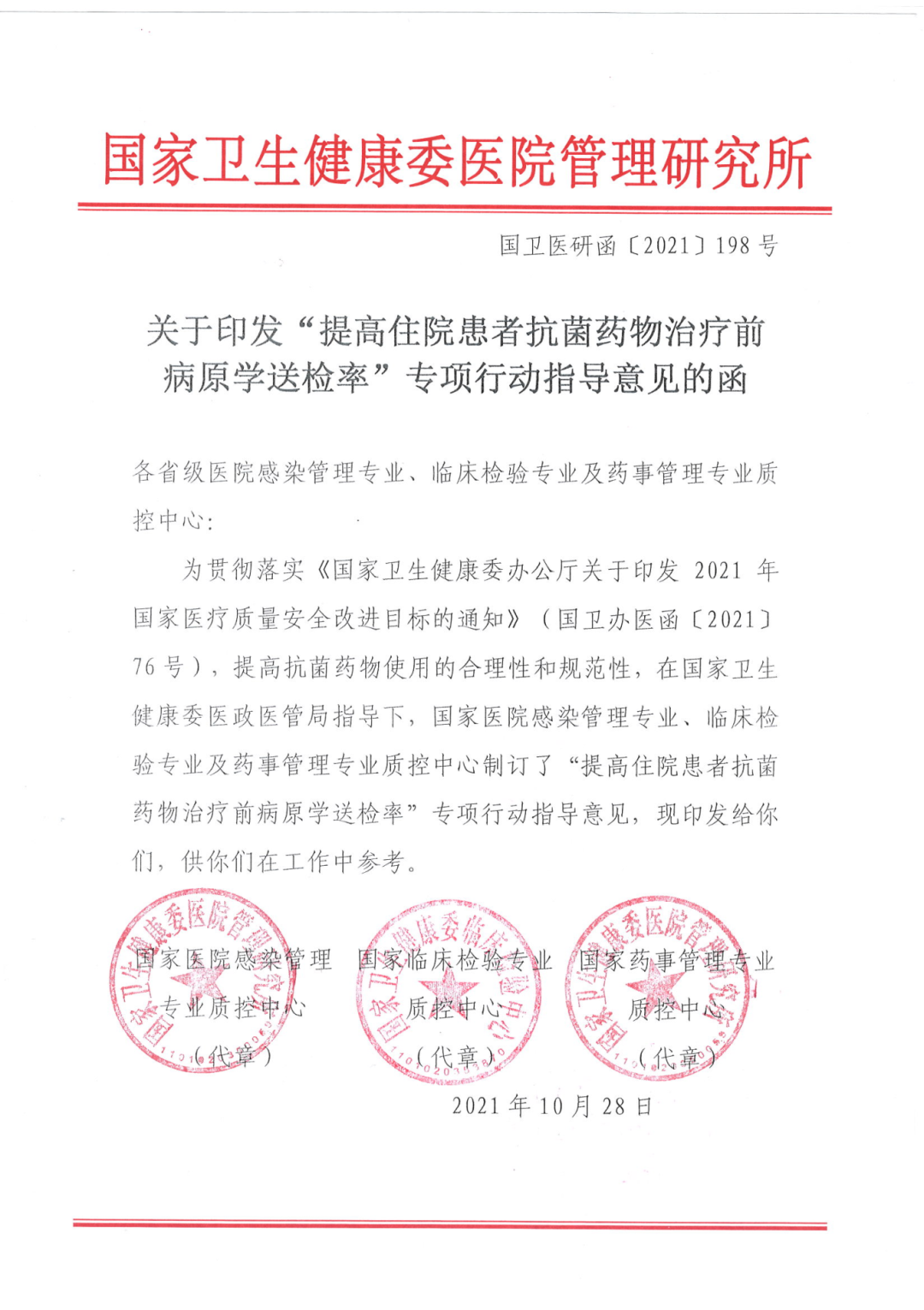 “提高住院患者抗菌药物治疗前病原学送检率” 专项行动指导意见