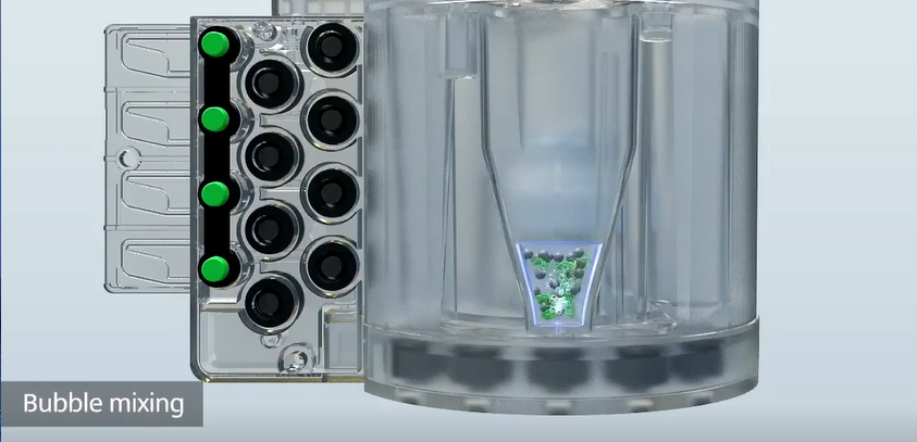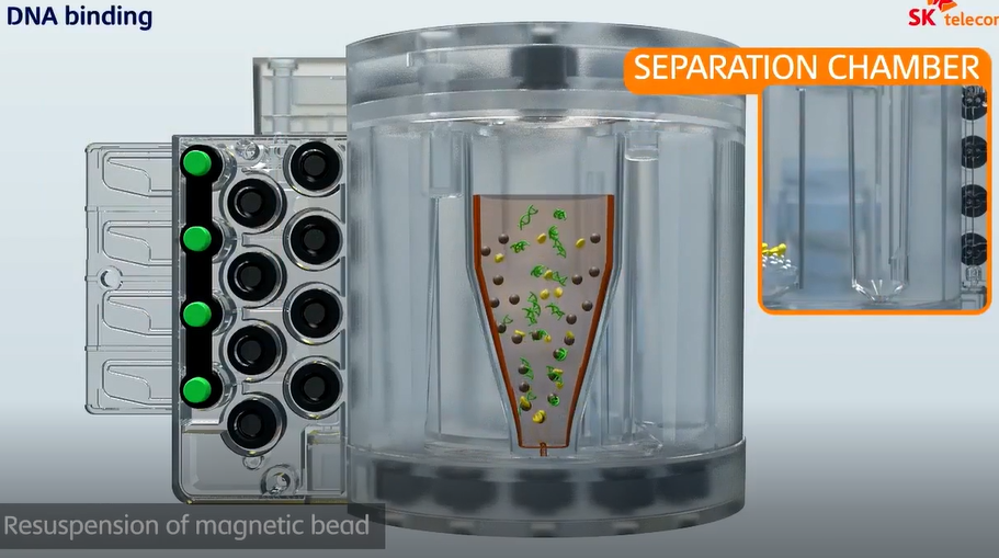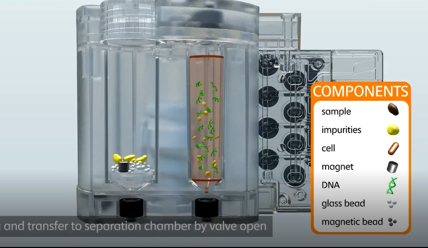 文章来源:IVD从业者网 | 作者:锁炎 | 韩国SK集团此前推出的FastCheckMolecular Dx POCT system也是一款非常不错的分子POCT产品,SK集团韩国最大的移动通讯运营商,其医疗保健业务,主要包括个人医疗、智能医院解决方案、体外诊断设备3大战略领域。 据生物探索2015年的文章显示,在诊断设备方面,SKT投资NanoEnTek、西安天隆科技公司,与分子监测公司Seegene建立战略合作,目前推出FREND产品,该产品可以透过一滴血就能监测癌症、心脏病等疾病。 今天给大家剖析的是一款基于微流控试剂卡盒的分子POCT产品—FastCheckMolecular Dx POCT system。 如图所述,这套系统有检测仪器,试剂卡盒和采样管三部分组成。 整个检测过程包含6个步骤: 1. 样本裂解 2. 杂质过滤 3. 核酸吸附纯化 4. 核酸洗脱 5. 扩增体系配置 6. PCR扩增及检测 1 样本裂解 样本仓中预置了玻璃珠和磁珠,样本加入样本仓之后,在机器磁场的作用下,高速运动的磁珠和玻璃珠、样本之间产生撞击力,进而对加入样本仓中的样本、细胞及其他杂志进行裂解。 2 杂质过滤 在进行完第一步之后,样本完成裂解,此时底部阀门打开,在力的作用下,含有核酸的液体被转移到第二个舱室,而蛋白质、脂质等杂质和玻璃珠在底部纳米薄膜的过滤下,留在了第一个舱室内。 3 核酸吸附纯化 核酸吸附纯化过程:纳米磁珠与核酸结合 第三步是将第三个舱室中的含有高亲和力的纳米磁珠与第二舱室中的液体进行混合,在力的作用下,磁珠吸附核酸,形成结合体,同时加以磁场,聚集结合体,从第三舱室中排出废液,完成第一次核酸纯化过程。然后更换buffer进行第二次纯化过程,去除杂质。 4 核酸洗脱 第四步是注入核酸洗脱液,将纯化后的核酸从磁珠上洗脱下来,再加以磁场力的作用,去除磁珠,同时将含有核酸检测的液体转移至预置有冻干试剂的试剂管中。 5 扩增体系配置 提取好的核酸再力的作用下先进入预置有冻干试剂的试剂管中溶解PCR反应所需要的冻干原料,完成体系配置过程,最后被注入试剂盒尾部PCR反应管内。 6 扩增及检测 PCR扩增及检测过程:注入PCR反应管的反应液在温控系统和光学系统的作用下完成PCR检测并报告检测结果。 从这款产品的设计来看,单份标本能够最后分为四个反应室进行,再配合荧光通道,能够完成多重靶标检测,是一种非常不错的技术解决方案。 参考资料:SKtelecom官网,视频来自互联网等,如涉及侵权,请联系删除。 |
