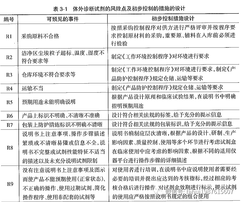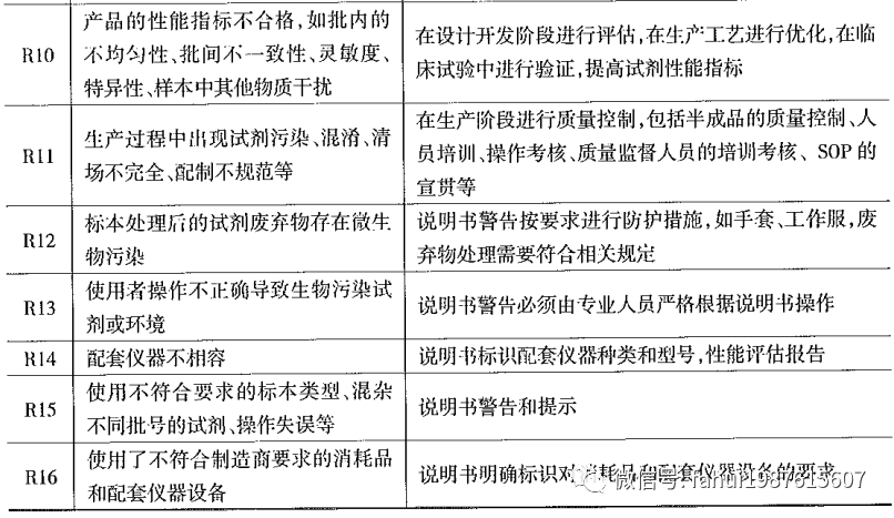 我国体外诊断试剂行业起步较晚,在原料和技术方面都还需要很大的改进,使得市场的体外诊断试剂产品质量良莠不齐。各类体外诊断试剂的风险都是存在于产品生产、使用的全过程中。应该从设计研发的源头开始,建立各项检验制度,覆盖原料、中间品和成品,监控整个产品实现的过程,通过包装标签上的警告性语句,尽可能避免这些风险的出现,并在使用环节进行培训,保证使用的规范。