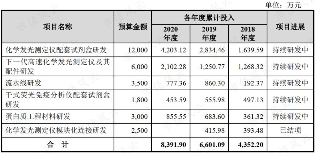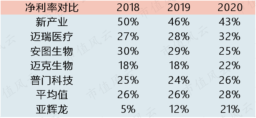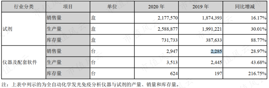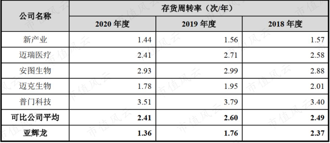 仪器销售作为收入端主要驱动力,公司的仪器销售量在2017-2020H1,由1361台增至5102台;其中化学发光仪器销量由166台增至2212台,销量量占比由12%提升至43%。 2017-2019年,仪器合计销量CAGR为67%;同期,试剂销售收入由9411万元增至3.6亿元,CAGR为96%,试剂收入增长超过仪器收入增长。 (来源:问询函回复) 对比来看,2019年新产业的化学发光仪器销量为2285台;同期公司化学仪器销量为1388台,公司在化学仪器销量上仍然与新产业相比存在差距。 (来源:新产业2020年报) 自产产品,尤其是化学发光仪器的销售增长,推动了公司营业收入增长。 2017-2020年,公司营业收入由5.3亿元增长至10亿元,CAGR为24%;过往营收保持较快增长。 2020年营收同比增长14%,增速有所降低,主要系公司退出施乐辉代理业务所致。 2018-2020年,施乐辉产品代理收入分别为1.6亿元、9942万元和386万元,占各期营收的比重分别为21%、11%及0.4%。 2019年,公司业务调整,逐步退出施乐辉品牌产品的代理业务,2020年不再代理施乐辉产品,相关收入为处理尾库所形成。 (来源:招股说明书) 值得注意的是,2020年公司新冠检测产品在海外销售较好,该类产品海外销售收入为9057万元,占营收的比重为11%。 由于抗体检测试剂系核酸检测试剂的辅助及补充,截至目前并未大规模使用。因此,随着新冠疫情被逐渐控制以及新冠产品价格下降等因素的影响,其对公司的收入贡献持续性较差。 2017-2020年,公司归母净利润由589万元增长至2.1亿元,CAGR达228%,利润端呈现爆发式增长。2020年,归母净利润同比增长95%,依旧保持快速增长。 2018-2020年,公司的收现比保持在经验值1.0以上,表明公司收入的现金含量充足。并且净现比由2018年的0.8提高至2020年1.4,公司盈利质量持续提升,2020年达到优良水平。 (二)高毛利率,高费用率 2018、2019年公司的综合毛利率低于可比公司平均,但呈现逐年增长的趋势。 公司解释为:主要系公司与可比公司的产品销售结构不同所致。 我们以同样代理业务收入占比较大的迈克生物为例,其2018-2020年代理业务收入占主营业务收入比重分别为62%及61%,与公司代理业务占比相近;同期,迈克生物与公司的综合毛利率水平较为接近。 (来源:招股说明书) 2018-2020年,公司自产产品毛利率分别为63%、72%及74%;同期,代理产品毛利率分别为27%、27%及34%。 随着公司自产业务占比提升,起综合毛利率水平逐年上升,由2018年的40%,提高了20个百分点至2020年的60%;2020年公司综合毛利率与可比公司平均水平基本相当。 2018-2019年,公司销售费用率分别为17%及18%,与新产业、安图生物、迈克生物的销售费用率相当。 2020年,公司销售费用率略有上升,公司解释为:主要受新冠检测产品出口收入大幅增长,相应地运输费增加影响;同时累计对外投放的仪器数量增加使得折旧费上升。 总体而言,公司销售费用率与可比公司不存在明显差异。 2018-2020年,公司的管理费用率分别为7.1%、7.4%和6.1%,与同业可比公司平均水平相比较高。公司解释为:主要系公司正处于快速发展的阶段,为应对业务的快速增长,公司提前对管理团队及办公场所进行了布局。 与高费用率相对应的是,公司的净利率保持在较低水平。 2018-2020年,公司的净利率由5%提高至21%,提高了16个百分点;横向对比来看,公司的净利率水平持续处于可比公司中最低水平。以2020年为例,公司的净利率较可比公司平均值低了7个百分点。 以净利率来衡量,公司目前的盈利能力在可比公司中处于最低水平,存在较大提升空间。 (三)存货隐含风险 公司的现金循环周期由2018年的145天延长至2020年的258天,印证了其购存销周期持续延长,反映资金利用效率持续降低。 公司业务规模增长的同时,存货规模也在不断增长。 2018-2020年末,公司存货账面价值分别为2亿元、2.7亿元和3亿元,占各期末流动资产的比重较高,分别为45%、43%和38%。 横向对比,公司的存货周转率低于可比公司均值。2018-2020年,可比公司存货周转率均值分别为2.5次/年、2.6次/年及2.4次/年;并且持续高于公司的存货周转率。同期,公司的存货周转率由2.4次/年降至1.4次/年。 公司将存货周转率的下降,归因于“公司近年来自产产品市场需求快速增长,公司对自产产品积极备货所致”。 但在可比公司存货变现能力整体保持平稳的情况下,公司趋势向下,足够引起重视;毕竟以公司目前10来亿元的收入体量和2亿元左右的利润规模,存货的影响不容小视。 2018年以来,存货跌价损失持续增加,由531万元增加至2020年的1236万元。 公司也在招股书中也做出强调:若产品发生滞销,或其他原因导至存货跌价,可能影响资产质量和盈利能力。 (来源:招股说明书) 2018-2020年,公司的资产负债率由60%降至42%,整体财务风险有所降低。 横向对比来看,公司的资产负债率处于可比公司最高水平。以2020年为例,公司的资产负债率较迈克生物37%的资产负债率高出5个百分点,较可比公司平均值则高出21个百分点。 但从偿债能力来看,自2017年以来,公司的利息保障倍数由8逐步提高至2020年的20,显示公司对于到期债务的保障能力有所增强,偿债压力较小。 五、募投项目情况 公司的化学发光试剂产能利用率由2018年的97%提高至2020年的112%;同期,荧光试剂产能利用率由90%提高至117%,两种试剂的产能利用率都超过100%。随着需求的进一步扩大,这两种试剂的产能有待增加。 上市之前,公司化学发光领域进行产品研发,主要项目包括“化学发光