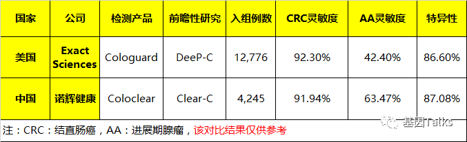 在美国,结直肠癌的发病率和死亡率在2016年至2019年间每年下降2%~4%,这可能归功于CRC的筛查,尤其是多靶点粪便DNA(mt-sDNA)检测。 2016年6月,美国预防服务工作组(USPSTF)发布了一项使用一系列可接受的筛查方式(内窥镜、影像及基于粪便的检测)进行结直肠癌(CRC)筛查的A级建议。1 这是USPSTF首次将多靶点粪便DNA检测(mt-sDNA,multitarget stool DNA)作为可接受的CRC筛查方式。 2021年9月,《JAMA Network Open》发表的一项利用纵向商业和医疗保险管理索赔数据库分析显示,从2016年8月到2019年7月,45岁及以上人群中多靶点粪便DNA(mt-sDNA)检测的使用稳(越)步(来)增(越)加(多):45-49岁,mt-sDNA检测比例从1.1%,2.8%上升至10.3%,50岁及以上,mt-sDNA检测比例从1.9%,5.9%上升至14.2%。2 在此期间,结肠镜检查和非mt-sDNA检测的使用保持稳定,而化学法粪便潜血检测(FOBT)下降。 *USPSTF已经注意到了化学法粪便潜血检测(FOBT)的下降,并意识到FOBT不如免疫法粪便潜血检测(FIT)灵敏度高,他们可能会劝阻FOBT的临床使用 说到多靶点粪便DNA(mt-sDNA)的检测产品,其代表就是Cologuard。Cologuard是美国分子诊断公司 Exact Sciences(精密科学)于2008年开发,并最终在2014年获FDA批准上市的非侵入性结直肠癌筛查产品,适用于筛查两性45岁及以上具有结直肠癌平均风险的人群。 Cologuard的多靶点,主要体现在三类独立的生物标志物上(根据其SSED文件内容,共包括11种不同的生物标志物3): 1)以基因启动子区甲基化为特征的表观遗传DNA变化为目标:具体的甲基化基因靶点包括N-Myc下游调控基因NDRG4和BMP3,已被证明在CRC中高甲基化,将提纯的核酸通过亚硫酸氢盐处理使没有甲基化的C转化为U,并使用特异性识别甲基化序列的引物和探针进行检测; 2)针对KRAS基因中的7个特定点突变:KRAS在CRC中的突变频率为44.7%,主要集中在KRAS基因第二外显子的12,13号密码子位置,检测KRAS的7个热点突变(G12A,G12C,G12D,G12R,G12S,G12V及G13D)能够识别90%以上的KRAS基因突变; 3)基于非DNA的,用于检测大便隐血中的血红蛋白:CRC筛查的常规手段,采用免疫法粪便潜血检测(FIT),灵敏度更高; 此外,β-肌动蛋白(ACTB)作为一种内参基因,用于确认和定量每个样本中存在的人类DNA总量,指导结果的判读及监测样本质量。 Cologuard的最终结果是基于患者个体甲基化、突变和血红蛋白检测结果的综合评分确定的。该评分是通过将患者的个体甲基化、突变和血红蛋白测定结果乘以一个常数标记特定权重因子来计算的。这些单独加权的评分结果的总和决定了综合评分(范围0-1000),然后将其与分界值(183,即>183为阳性)进行比较。 临床性能方面,Cologuard对结直肠癌(CRC)的检测灵敏度为92.3%,对进展期腺瘤(AA)的检测灵敏度为42.4%,NPV分别为99.94%和94.79%,均优于FIT(CRC,73.8%;AA,23.8%)。4 ▲ 来源于Cologuard的SEED文件 为什么Cologuard在结直肠癌筛查中的应用越来越多呢? 这主要是因为Exact Sciences采取了直接面向消费者的营销策略,其次美国医疗保险和医疗补助服务中心(CMS)将Cologuard纳入联邦医疗保险Medicare,这可能是其检测稳步增加的原因,这种增加的趋势有助于提高CRC的筛查率。除此以外,FDA进一步扩大Cologuard的适应症:将筛查年龄扩大到≥45岁的人群也会提高其市场规模和应用。 NCCN最新版的结直肠癌筛查指南(2021.V2版),将CRC的筛查年龄从≥50岁修改改成了≥45岁,同时,将 stool DNA test(粪便DNA检测)正式更名为mt-sDNA test(多靶点粪便DNA检测),并将建议筛查周期从周期不明确改为建议每3年一次。5 ▲ NCCN V2.2021 CRC Screening Exact Sciences的Cologuard于2014年上市,至今7年,尽管其标志物和检测靶点并无专利保护,但国内外未曾有类似mt-sDNA检测产品上市,直至2020年11月,杭州诺辉健康针对结直肠癌筛查的“常卫清(Coloclear)”获得NMPA的批准上市。 临床性能方面,“常卫清”对结直肠癌(CRC)的检测灵敏度为91.94%,对进展期腺瘤(AA)的检测灵敏度为63.47%;针对CRC和AA筛查特异性为 87.08%;CRC筛查阴性预测值 99.6%。6 2021年1月18日,国家癌症中心中国结直肠癌筛查与早诊早治指南制定专家组发布的《中国结直肠癌筛查与早诊早治指南(2020,北京)》将mt-sDNA检测产品“常卫清”纳入结直肠癌筛查工具,推荐检测周期为每3年一次。7 2021年8月,诺辉健康公布21H1业绩,CRC筛查产品“常卫清”实现收入1,420万元人民币,同比增长149%,实发货量约1,211,500盒,同比增长392%。可见mt-sDNA在中国CRC筛查中也越来越多。 结直肠癌的发生发展大多遵循“腺瘤—癌”序列,从癌前病变进展到癌一般需要5~10年的时间,为疾病的早期诊断和临床干预提供了重要时间窗口。及早筛查将有助于通过适宜临床干预降低CRC发病率和死亡率。 Screening Test Cologuard,SUMMARY OF SAFETY AND EFFECTIVENESS DATA (SSED). |