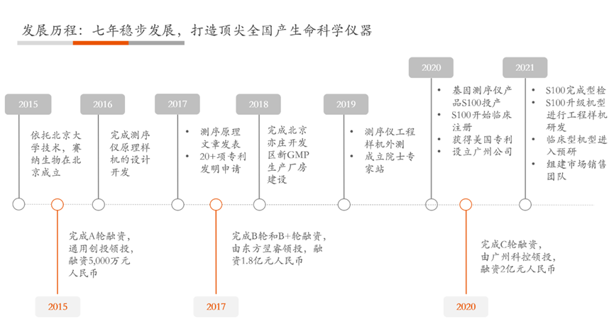 2015年,依托国际首创的荧光发生(Fluorogenic)测序化学和纠错编码(ECC)测序策略两项核心测序技术,毕业于北京大学的陈子天博士联合谢晓亮院士、黄岩谊教授团队创立了赛纳生物。秉承“通过技术拓展知识边界”的企业愿景,赛纳生物致力于通过不断的技术迭代和革新,持续拓展和突破知识边界,以一流的技术和产品重新定义“中国制造”,打破目前由外资企业垄断的测序市场现状,构建中国主导的测序新生态。历经7年的稳步发展,赛纳生物成功研发生产了拥有全自主知识产权的国产基因测序平台S100,可为基因行业提供更准确、简便、快速的上游解决方案。2020年,测序平台S100投入生产并开始临床注册,预计2022年可获得上市许可。 从技术源头创新,打破基因测序市场格局 基因测序作为21世纪生命科学领域最具有突破性的技术之一,不断推动着人类对生命的探索。自1977年Frederick Sanger提出双脱氧终止法(Sanger)测序技术开始,人类便迈入基因组学时代。四十多年时间里,从Sanger测序到NGS技术、单分子测序、纳米孔测序,测序技术不断升级迭代。其中,NGS技术检测速度快、准确度高,可实现大规模平行测序,是目前测序市场应用最为广泛的测序技术。 然而,基因测序上游关键技术被国外寡头长期垄断,国际基因测序市场长期被国外企业占据,国内相关行业发展受限制,全自主研发测序平台已刻不容缓。此外,目前的基因测序市场格局已趋于稳定,市场划分趋于成熟,想要打破现有的市场格局,仅基于原有测序技术研发测序平台难以实现。在技术和市场双重垄断之下,研发新的测序技术并进行产业化,成为扭转市场格局的路径之一。 陈子天博士对国产测序平台的研发和国内测序市场需求有着多方面的考量。高精密测序仪的研发技术壁垒高,工艺复杂,成本和时间代价巨大,还需配备有效的试剂盒、芯片及成套解决方案。他谈道:“国内具有上游核心技术闭环的测序公司寥寥无几,部分涉足上游测序平台开发的企业也多沿袭已有的技术和策略。因此,目前市面上的测序平台应用场景多有重合。虽然近几年国产测序平台有了长足的发展,但产品竞争力仍相对较弱,无法与国际主流测序平台相抗衡。” 临床端的应用是基因测序平台最有前景的应用方向之一,但国内外临床市场对测序平台的需求有着明显的区别。以美国临床市场为例,美国医疗体系由中心化实验室主导,病人在中心化实验室接受医疗服务,检测样本量巨大,需要高通量的大型测序平台。而中国的医疗保险体系与美国完全不同,病人更倾向于在医院端完成支付和检测。对中国医院和中小型研究所来说,大型的高通量测序平台开机费用高,与实际需求并不匹配。相反,中低通量、速度快的小型测序仪是更好的选择。除了解决临床医院的基本需求外,突破性测序技术平台还可以在实验进程中探索未知。 陈子天博士强调:“要想做好测序仪,就必须变换赛道,从技术源头创新,依据中国的实际情况,构建中国主导的测序新生态。” 从0到1:充满坎坷的全自主国产测序平台研发之路 基因测序平台的研发对人才要求极高,涉及复杂的分子生物学、化学、物理以及芯片、精密机械、算法等多学科多领域交叉,技术门槛高,知识产权壁垒森严。仅全盘复制或在细枝末节处进行技术改造无法在真正意义上打破垄断,实现真正的自主可控并不容易。 陈子天博士介绍道,赛纳生物以“独立思考、突破极限”作为企业文化,拥有多学科交叉型的高素质专业化团队覆盖生物化学、微芯片、光学机械、电子软件及生产质量注册多个领域,在测序技术研发及工业化过程中投入了大量精力。 赛纳生物的关键核心技术之一是荧光发生(Fluorogenic)测序化学。2011年,谢晓亮院士在Nature Methods上首次提出了此技术。该技术结合了当前主要测序技术的优势,在DNA互补链合成时可以释放同所延伸核苷酸数目相等的荧光分子,利用这一反应可以实现低错误率的边合成边测序。其优势在于,荧光修饰位于磷酸键末端,在聚合反应发生时,碱基始终处于天然状态,没有“分子疤痕”,理论上DNA分子链的合成可以无限延伸,实现长读长。 基于荧光发生(Fluorogenic)测序化学,谢晓亮院士、黄岩谊教授课题组深耕4年,陈子天博士及同事历经种种挑战与考验,从化学原理上对荧光发生测序技术中的荧光标记分子进行结构优化,设计合成了反应性能出色的新型荧光核苷酸测序底物;对聚合酶参与的物理化学反应过程进行测试及建模;优化测序反应条件和信号采集流程;开发信息论编码解码等等,经过无数次改进、重复,开发了纠错编码(ECC)测序策略,大幅提升了高通量测序的准确度。该成果已于2017年发表于国际顶级学术期刊Nature Biotechnology。 荧光发生(Fluorogenic)测序化学和纠错编码(ECC)测序策略是中国本土的原创测序技术。随着测序技术的不断完善,赛纳生物目前已实现了全领域(试剂、设备、算法、芯片)专利覆盖,构建起知识产权的强大护城河。自此,我国基因测序技术拥有了独立自主的核心技术与知识产权。 图:赛纳生物申请知识产权97项,已获授权47项。 从1到100:不断迭代升级,推进测序仪产业化 基于荧光发生(Fluorogenic)测序化学和纠错编码(ECC)测序策略,赛纳生物研究团队分工合作,通过反复迭代调试,于2017年研发出第一台原理机,即S100。S100简便易用,既吸取了荧光发生(Fluorogenic)测序化学中