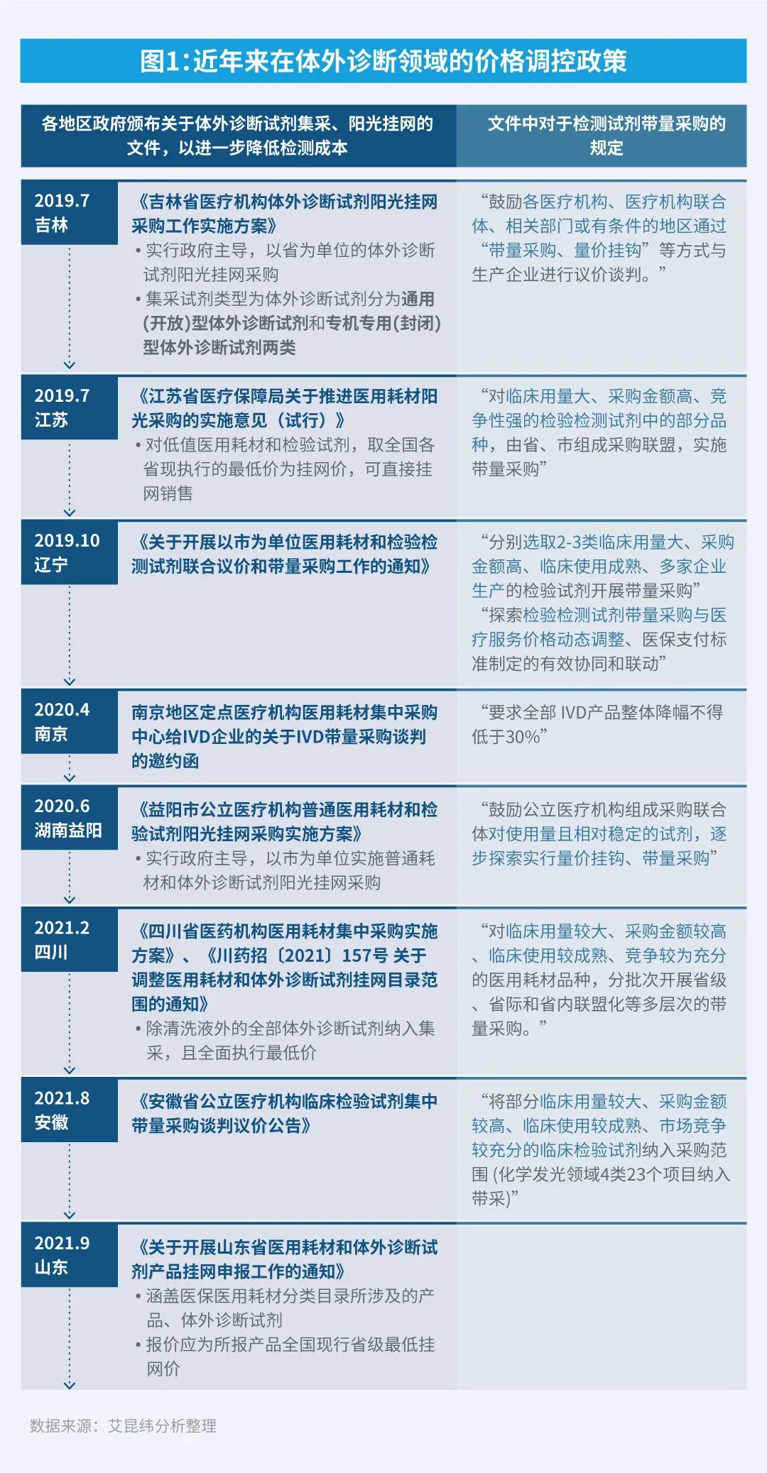 原 创:体外诊断学院 供 稿 :IVD销售实战课堂 体外诊断试剂集采,并不是一个新词。却能在2021年成为一个热词。早在2004年前后,广东、河南、安徽等省份都已经有检验试剂集采的模式了。然而,医疗市场和政策、医保、医院等各个方面的密切相关性,有时候产业会不断跟随政策以及行业发展进行调整。跟上步伐的继续淘金,跟不上的淘汰或者躺平。 集采:用大家通俗的话来说,类似于团购,一般是以中央(国采)、各省份(省采)、地级市(地采)、由医院集中报团形成集采联盟等形式,以一定既有采购量或可实现的预期采购量为基础,与厂家或区域总经销商进行集中谈判,获得一定降价幅度和服务承诺的方式。 近年来,药品带量、医用高值耗材带量,让体外诊断领域的从业者一直在疑虑,体外诊断行业会不会大面积集采。新冠集采和安徽试点发光试剂集采都是真正意义上的集采。 从目前的形势来看,预测已经进入医保的很多常规检验产品,未来面临价格调控的可能性很高。除政策层面外,常规体外诊断市场入局者众多,同质化竞争也不断“优化”了进院价格。 数据来源:艾昆纬分析整理 那IVD集采这个大环境,会带来哪些行业变化呢?我们又该如何应对了?本期,体外诊断学院,整理了内部会员沙龙相关文字稿,供各位从业者参考。 1. 集采为国家的医保基金,节约了成本。国内的公立医院很大一部分住院患者报销都来自于医保,集采降价后,医保和医院成本都在一定程度上实现了降低。 2. 集采为各级医疗系统,肃清了风气。很多厂家或经销商,在产品之外,将更多的成本放在医院的关系维护费用上,对各级医疗系统和患者的诊断,产生了非常大的负面影响,很多行业的知名专家,都会受到相应牵连,对医疗系统本身也是非常大的损失。 3. 集采对患者的诊疗费用负担,起到了改善。很多省份实施阳光采购后,降低药品、耗材进入医院的售价后,立刻对相应项目的收费进行调整,让患者在同样检查的情况下大大减少支出,同时可以遏制部分临床科室的乱开单、过度诊疗的现象,让患者受到更好更精准的检验和治疗。 每件事物就像一个硬币,有正面自然也会有反面。 1. 如何把好产品“采”出来,优胜劣汰。因为集采过程中,企业产品质量一般,成本极低的小厂家,相较体系正规,管理成本较高的大厂家,报出更低的价格。会不会造成劣币驱除良币的现象。价低者得,是否靠谱。 2. 如何解决降价后的售后质量。很多厂家的售后体系投入了大量心血,原本能够与医疗机构的操作老师形成一定频率的联动,定期维护保养,对测试准确性提供强有力的保证,集采降价后,为了削减运营成本以适配中标价,可能面临削减售后人员,降低售后质量,直接导至后期原本检验较为精准的设备和对应试剂,因缺乏定期的维护和保养,质量持续下降,甚至造成结果不准导至病症误诊的情况。 3. 如何避免不正当竞争。近几个月的河北、四川平台建设过程中,由于平台策略的制订方向为省内医疗机构交易最低价公示,同时申诉、备案等环节极为繁琐且很多资料获取难度极大,部分不良厂家采取了委托或收买其他竞品厂家的经销商,恶意低价配送商品给到医院,将竞争对手在对应省份的市场和价格体系,恶意做低做差,甚至影响到联动省份之间的价格。 4. 如何不影响企业创新。很多省平台要求必须要有其他省份挂网价格才能在本省挂网,而目前大部分省平台都处于封闭不开放新增的状态,很多以提升医疗水平为目的的创新产品,在这样的集采环境下,寸步难行。