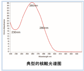 核酸分子上的碱基含有芳香环结构,具有紫外吸收特性,在250~280nm波长范围内具有强烈的光吸收能力,其中最大吸收波长位于260nm处。