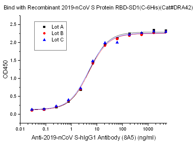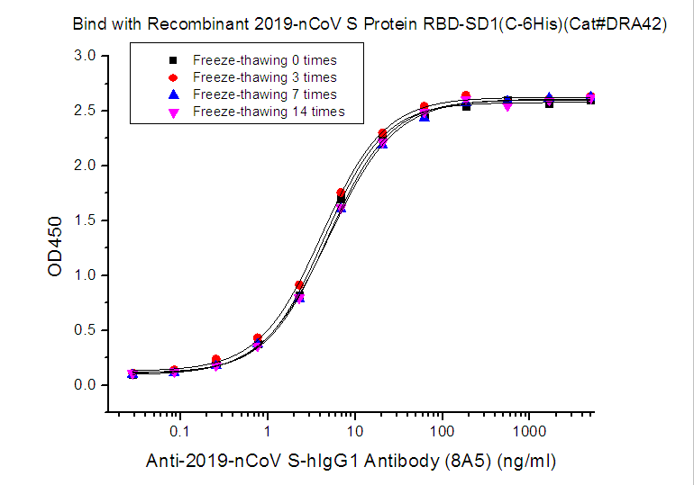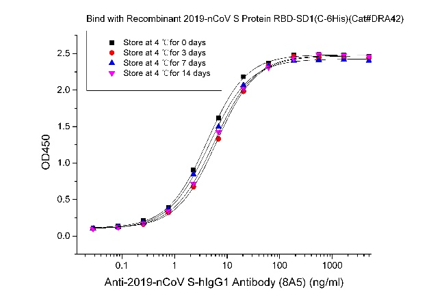 2021年10月29日,中国计量院推出抗新型冠状病毒受体结合域(RBD)蛋白中和抗体标准物质,该标准物质原料由苏州近岸蛋白质科技股份有限公司表达和纯化。 当前,新冠肺炎疫情持续蔓延,病毒不断变异对疫情防控工作带来持续挑战。在国家开始陆续号召开始第三针新冠疫苗的接种政策下,疫苗的有效性成为大家普遍关注的问题。血液中新冠中和抗体的滴度至关重要,评估新冠疫苗有效性的最重要的一项指标就是受试者体内中和抗体的含量。目前用于评估接种疫苗后的有效性研究应用相对广泛的是抗S1蛋白受体结合域(RBD)中和抗体,它能够与新冠病毒RBD区域结合,阻断RBD与人体ACE2受体结合,从而阻断病毒侵入人体细胞。因此,抗RBD中和抗体的检测对人群再次感染病毒的风险评估具有重要意义。 基于此,中国计量科学研究院全新推出抗新型冠状病毒受体结合域(RBD)蛋白中和抗体溶液标准物质,预期用于抗新冠病毒RBD蛋白中和抗体水平测量方法的验证评价以及实验室质量控制。该标准物质特异性强、稳定性好,并能实现精确复制,适用于市场上基于竞争抑制法原理的中和抗体检测试剂盒的性能评价验证和质量控制,保证测量结果的准确。 近岸蛋白质自主研发的抗新型冠状病毒受体结合域(RBD)蛋白中和抗体经过严格的质量控制和活性验证,旨在为行业客户及科研院所提供高质量的稳定可靠的产品。部分数据展示如下: 中和抗体阻断新冠假病毒侵染细胞验证: 图2 新冠中和抗体阻断SARS-CoV-2-Luciferase假病毒(Novoprotein Cat.XCV03 ) 侵染ACE-2过表达细胞株(Novoprotein Cat.XCC14 ) 图3 新冠中和抗体阻断SARS-CoV-2-GFP假病毒 (Novoprotein Cat.XCV02 )侵染ACE-2过表达细胞株(Novoprotein Cat.XCC14 ) 中和抗体阻断S三聚体和ACE-2受体结合验证: 图4 中和抗体阻断S三聚体和ACE-2受体结合, IC50=25ng/ml 中和抗体产品稳定性验证: 反复冻融稳定性: 4℃、25℃保存稳定性: 左右滑动查看更多 批间稳定性: 相关产品 |