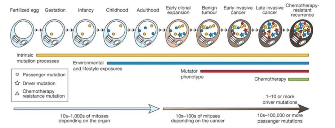 01 驱动突变和非驱动突变 所有癌症的产生是癌症细胞DNA的体系获得性改变的结果。然而这并不意味着癌基因组中的所有体系异常都参与到癌症的发展中,实际上,有些突变并不参与。为了体现这一概念,创造了驱动(driver)突变和非驱动(passenger)突变这两个术语。 驱动突变有因果性地参与到癌症形成中,它使得癌细胞具有生长优势,同时这一突变是从癌症产生的组织微环境中正向选择出来的。对于癌症最终阶段的维持,驱动突变不是必需的(尽管常常是),但它一定在癌症形成的细胞系的某个时间点被选择出来。 另一方面,非驱动突变没有被选择,不会赋予克隆增长优势,因此也就不对癌症发展有所贡献。非驱动突变会出现在癌症基因组中是因为细胞分裂经常会产生没有功能性影响的体系突变。因此,一个获得驱动突变的细胞已经在其基因组中拥有了生物学惰性的体系突变。这些突变会在后续的细胞克隆增长中一直被携带,也因此会在终癌(final cancer)的所有细胞中。 一些体系突变可能会有损细胞的生存。这些突变会受到负向选择,也因此不会出现在癌症基因组中。当前,对癌基因组中负向选择的研究是有限的,但如果这些突变没有可操作性,也是令人惊讶的。 癌基因组中的每一个体系突变,无论其结构本质,都可以根据其对于癌症形成的影响进行划分。驱动突变赋予携带它们的细胞生长优势,同时在癌症的发展中被正向选择。根据定义,它们出现在癌症基因中。其他不赋予生长优势,恰巧出现在那些获得驱动突变的癌症细胞祖先中的突变则是非驱动突变。 驱动基因(driver gene)是指那些自身突变与癌症发展有因果联系的基因。从功能上基于基因在疾病形成中的作用,肿瘤驱动基因可以分为肿瘤抑制基因和致癌基因(oncogenes)。无害的抑癌基因防止癌症的发生或阻碍其发展,而致癌基因一旦获得特定的基因组缺陷,则促进癌症的发展。 02 突变标记 体细胞突变散发于人的整个生命周期,并且在人体的各类细胞中都有可能出现,这些突变是许多突变过程的结果,包括DNA复制的失真,外源或内源的突变原暴露接触,酶介导的对DNA的催化修饰,以及错误的DNA修复。 突变类型特指碱基替换和这一替换的环境。具体来说,就是C>A(表示C被替换成A),C>G,C>T, T>A, T>C, T>G,以及两侧的一个碱基。因此一共有96种可能的突变或突变类型。 图源:https://cancer.sanger.ac.uk/signatures/ 不同的突变过程产生独特的突变种类组合,这些组合被称为突变标记(mutational signatures)。下图是突变标记9。图的横轴具体展示了96种突变类型。 (部分标记图,标记9-标记21) 图源:https://doi.org/10.1038/nature12477 大多数个体的癌基因组表现出不止一个突变标记,并且观察到有标记的不同组合。不同标记在个体癌症样本的贡献图样会有很大不同。例如标记1A/B对大多数癌症有相似的突变数量贡献,而其他一些标记比如标记2,3,4,6,7,9,10,11,13,在一些样本中有很大贡献,而在相同癌种中的其他样本中贡献很小。 图源:https://doi.org/10.1038/nature12477 每个标记都被提出相关的病因学。以标记9为例,在慢性淋巴细胞白血病和恶性B细胞淋巴瘤中观察到的标记9,特点在于ApTpN和TpTpN三碱基中T>G的颠换,而且仅限于发生了AID基因相关的体系免疫球蛋白基因超突变的癌症。然而,标记9没有AID已知突变的特点,从而被提出是由聚合酶η造成的,它是一种参与到处理AID引发的胞嘧啶脱氨化过程中容易出错的聚合酶。 更多的标记信息可浏览https://cancer.sanger.ac.uk/signatures/ 03 结语 理解癌症中的基本概念和常见词汇会提供很大帮助。本系列下期将会介绍其他一些常见的概念,请保持关注。 桐树基因3D科研模型 设计执行丨数据挖掘丨撰写投稿 提供一站式转化性研究服务 桐树基因作为一家深耕肿瘤精准医疗领域多年的创新型企业,始终紧跟国际研究前沿,在科研上倾注了大量的精力与资金。 搭建了以肿瘤进化论与肿瘤基因组学标本库为基础的转化性研究中心,从课题设计、研究执行(基因检测)、数据整理及挖掘、文章撰写、投稿修改,提供一站式转化性研究服务。 |