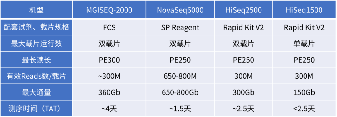 表2 具备PE300/SE600读长能力的三款机型一览