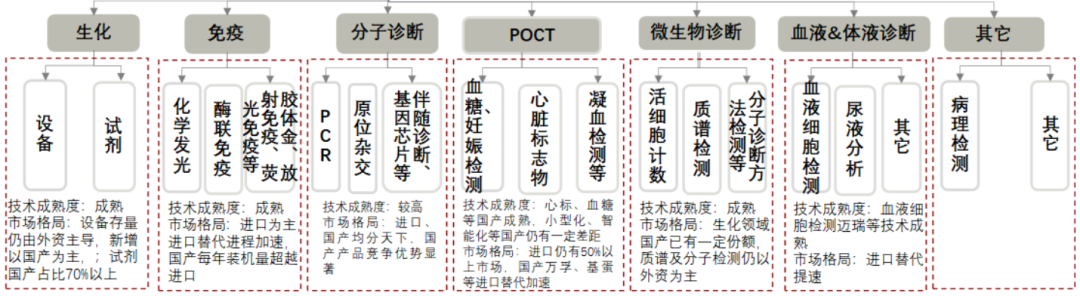 原 创:体外诊断学院 来 源:IVD销售实战课堂 如果说新冠疫情是一只黑天鹅,那么这只黑天鹅已然改变了体外诊断行业未来发展的趋势,今天”IVD销售实战课堂“旗下”体外诊断学院“分享体外诊断行业未来的发展趋势。不足之处,欢迎指正! IVD主流细分市场 引自:招商银行研究院 生化诊断仪器多采用开放体系,诊断试剂等产品技术成熟,市场竞争激烈,后续关注集采风险。生化诊断通过检测样本中酶类、糖、脂、蛋白质、无机元素等生化指标判断机体血糖、血脂、胆固醇、肝功能、肾功能等。2010年生化诊断市场约 40 亿元,2018 年市场规模突破 100 亿元,年复合增长率维持在 8%左右。 免疫诊断为体外诊断最大细分市场,其中化学发光检测已成为主流。免疫分析是基于抗原、抗体特异性反应测定特定免疫状态,检测各种疾病的检测方法。近年来,随着技术不断发展成熟,免疫诊断已成为国内体外诊断市场占比最高的细分领域。2019 年免疫诊断市场规模约 256 亿元,占体外诊断整体市场规模约 40%,近几年其市场增速接近 30%。 分子诊断技术要求最高,市场发展前景最为可观。分子诊断通过检测生物体内遗传物质结构或表达水平的变化,判定是否已发生或发生某疾病的概率,也可以用于检测病毒、细菌等微生物。分子诊断在全球范围内都处于发展初期,国内外市场都有较大增长潜力。2019 年,国内市场分子诊断市场规模 130 亿元,5 年复合增长率 30%,市场增速介于生化诊断和免疫诊断之间。随着国内肿瘤伴随诊断、产前诊断等市场兴起,分子诊断市场仍有较大增长潜力。 未来十年,将会是体外诊断行业激烈动荡的十年,也必将是精彩纷呈的十年。行业将在未来十年进行快速的淘汰和产业升级,行业变革、产品创新、营销模式、国产替代、细分领域整体解决方案、医保控费、大规模集采、智能化流水线等将持续成为行业热点。 平台化:迈瑞医疗、安图生物、迈克生物、新产业、迪瑞医疗、亚辉龙、科华生物等上市公司将会在生化免疫领域进行激烈的“厮杀”。期间,也会不断有新的“黑马”抓住机遇做强做大。 圣湘、达安、凯普、伯杰、之江、硕世、天隆、博奥、华大、贝瑞、泛生子、燃石医学、思路迪、诺和致源等分子诊断企业将会在各自的分子诊断细分领域决胜,未来分子诊断行业巨头,必将出现在基因测序领域。
