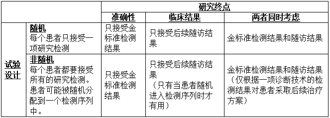 刘博谈验证 这是刘博谈验证的第三十二篇,在本篇中,我们来讨论诊断技术临床验证的研究终点和研究设计。 4.1.3、研究终点和研究设计 诊断性检测验证的终点将决定结果的使用方式,这至关重要的。 诊断检测的验证分为以下层次:技术能力、诊断准确性、治疗影响和对患者结果的影响。 早期关于优秀技术能力的报告往往是后期关于诊断准确性和临床价值(对治疗和患者结果的影响)研究的基础。 在计划和方案制定阶段的关键问题是,研究的目的,是试图测量诊断的准确性(即敏感性和特异性),还是试图研究检测对临床结果的影响,或者两者都进行研究? 请注意,我们将诊断检测的结果定义为检测后过程中的任何变化。它不应该被认为是发病率和死亡率的同义词。 A、准确性 诊断准确性的研究使用一个“金标准”来验证疾病的存在或不存在。 当没有公认的“金标准”时,准确性研究就会出现潜在的困难,可能不清楚应该使用哪一个可用的参考标准,要知道所有的参考标准都是不完美的。 例如,在冠状动脉疾病的诊断检测研究中,冠状动脉造影被试做金标准。 然而,对做过血管造影的患者的组织进行的病理检查表明,放射学程序低估了疾病的严重程度,医生必须在这种情况下解释对准确性的研究结果。 无论是否完美,在实践中,适当的金标准将是医生用来定义特定疾病患者的真实状态的检测或程序。 B、结果 因为诊断技术的目的是提供信息以改善患者的结果,所以患者的结果是技术验证的一个重要终点。 从结果的数据中进行推断可能比解释诊断准确性研究的数据更困难,当使用长期的结果测量时,技术可能在研究完成前就已经过时了。 此外,长期结果可能是一个不现实的标准,因为诊断技术的影响通常要服从于其他因素的影响,如疾病过程本身的性质、患者的依从性、治疗的效果等。 长期结果的改善可能不是一项试验最重要的效果。如果干预变量的作用掩盖了两种技术的长期效果的差异,也许这些差异并不真正重要。 研究人员必须明白,两个具有相同长期结果的患者可能经历了非常不同的检测后过程。 各种中间变量可能是衡量检测效果的重要指标。 此外,这些变量的验证可能比长期效果更实用。 例如,一项研究可以衡量一项诊断技术避免进一步侵入性诊断程序的能力。 在对孕妇进行婴儿二十一三体综合征检测时,NIPT检测未必准确性高于羊水穿刺,但是,NIPT检测能极大程度规避羊水穿刺带来的感染风险,这是一个重大的好处,代表了检测后过程的改进。 因此结果研究必须跟踪中间结果和患者对这些结果的态度。 C、研究终点的选择 表1|试验设计和研究终点组合 表1中描述了研究设计(随机或非随机)和终点(准确性和/或结果)的排列组合。 诊断技术验证的研究设计影响着进行每一种类型研究的可行性。 在随机设计中,每个患者只接受一项研究检测;在非随机设计中,每个患者将接受所有的研究检测,尽管随机化可以用来将患者分配到一个特定的检测序列中。 第三章已经讨论了随机设计的优点和缺点。 下面的例子说明,研究设计可能与选定的验证终点不一致。 在一个理想的研究中,为了比较两种无创检测的准确性,每个患者都要进行两次检查,研究者在一次研究中使用这种方法来验证两种诊断技术的准确性和对结果的影响。 然而,为了比较检测对同一患者结果的影响,在确定准确性时,必须向患者的医生隐瞒两个检测中的一个结果。 这项研究的设计带来了伦理问题,因为患者将接受不能影响其治疗方案的诊断性检查,患者和医生都可能不愿意参与。 在第三章中,我们建议,在验证结果时,随机设计可能比非随机设计更可取,研究者也可以将重点从长期结果转向短期结果。 D、将短期结果作为研究终点 合成方法是一种验证短期结果的方法,如诊断性检测对患者治疗方案选择的影响。 它包括从医生那里获得关于他们检测前治疗策略的详细信息,并将其与检测后对患者的治疗方案选择进行比较。 例如,每个医生在知道两种不同诊断技术的结果之前都会写下患者需采取的措施。 使用一个随机的方案,两个检测中的一个结果将被交给每个医生,然后他们将根据检测结果制定和记录一个治疗方案。 接下来,另一项检查的结果将被披露,而患者的治疗方案最终将基于所有可用的信息,如果医生的计划因为检测结果而改变,那么一项检测就产生了影响。 |