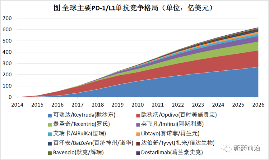 从全球总体情况来看,先行者进口PD-1药物,K药、O药、T药、I药占据了绝大部分市场份额。本土创新药企上市的PD-1新药,例如艾瑞卡、百泽安、达伯舒等正在奋起直追。与国内PD-1几乎同时期获批的进口药物,例如Libtyato(赛诺菲/再生元)、Bavencio(默克/辉瑞)、Jemperli(GSK)则面临前有强敌、后有追兵的尴尬局面。