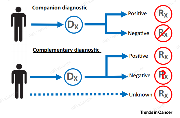 伴随诊断是不是必需品?跨国药企和国内本土药企的伴随诊断策略有什么区别?药企如何选择合适的IVD企业和产品进行合作?面对未来的肿瘤伴随诊断市场发展,还有哪些需要思考的问题? 近几年,随着中国新药研发领域的竞争加剧,伴随诊断越来越多的受到研发企业的关注和喜爱,尤其在肿瘤新药研发领域。伴随诊断似乎成了抗肿瘤新药的必备助力途径,如何权衡其利弊,成了新药研发和诊断企业所需要面对的问题之一。 伴随诊断市场可细分为肿瘤学、心血管疾病、中枢神经系统、炎症及病毒学。其中,肿瘤学是伴随诊断发展最快的疾病领域,在FDA获批的伴随诊断产品也以肿瘤领域居多。其中一个主要原因是肿瘤生物标志物的检测方法学的发展,以及肿瘤生物标志物的探索中越来越多的可成药靶点的被发现。这不仅反映了我们对各种癌症背后的遗传和免疫学途径的了解在不断加深,还带来了肿瘤伴随诊断市场的快速发展。 美国FDA批准的诊断检测在管理患者延长寿命和提高生活质量方面发挥着越来越普遍的作用。诊断检测对于治疗药物的安全有效使用(伴随诊断)是必不可少的,或者可以在不限制药物获取的情况下提高受益/风险比(补充诊断),这两种诊断检测被认为是实现精准医疗的重要因素。 ▲ 伴随诊断和补充诊断的临床应用:对于补充诊断,不是必需检测,临床医生可以在检测结果未知或阴性的情况下决定开始治疗。缩写:Dx,诊断检测;Rx,处方和/或治疗。1 伴随诊断与补充诊断是具有不同的开发背景下的产品类别。 伴随诊断(companion diagnostics,CDx)是一种医疗设备,通常是一种体外诊断设备,它对于患者用药是必需的,它可以为患者使用药物的安全性和有效性提供重要的信息,包括:确定最有可能从药物中受益的患者;确定该药物相关严重不良反应风险较大的患者;确定已经过充分研究具备安全性和有效性的人群亚组等。