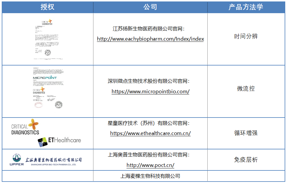 Critical Diagnostics公司目前已持有数项已在美国、中国等国发布的专利,以及其他正在申请的专利。 ▲公司官网: http://www.criticaldiagnostics.com/OUS/index.htm CDD官网 ST产品介绍 ▲PRESAGE® 检测 ▲ASPECT–LF™ ST2 测试 ▲ASPECT-PLUS™ ST2 测试 目前国内获得CCD公司授权的主要公司 上海瑞缔生物科技股份有限公司 (CCD产品的经销商) 北京利德曼生化股份有限公司 创始于1997年11月,于 2012年2月16日成功在深圳证券交易所创业板上市,股票代码:300289,公司总部位于北京经济技术开发区。 ▲利德曼官网: http://www.leadmanbio.com/html/about/ard1/ 巴迪泰(广西)生物科技有限公司 成立于2016年7月,是一家集研发、生产、销售为一体的体外诊断企业。作为韩国巴迪泰的控股子公司,公司的研发生产与韩国巴迪泰一脉相承,采用韩国先进技术及进口原料,创立了自己的国产品牌“艾美益”,并结合中国市场情况不断取得创新,开发出多款契合市场需求的免疫荧光分析仪。目前已注册、生产多款免疫荧光分析仪以及数十种配套的检测试剂盒,覆盖了心血管类、感染类、甲状腺、性激素、糖尿病等多个领域,可以为广大客户提供众多优质的POCT解决方案! ▲巴迪泰官网: http://boditechgx.com 从技术角度来说,CCD公司基于酶联免疫法的产品已不能满足临床快速检测的需要,但面对庞大的心衰检测市场,国内主动获取授权的厂家也不多,未来ST2检测市场的发展还有待探索,目前市场上主流的进口检测品牌,还并未有主动进入这个检测市场,或许正是因为少了这些主流品牌的推动,所以ST2未来花落谁家或许还值得期待一下! |