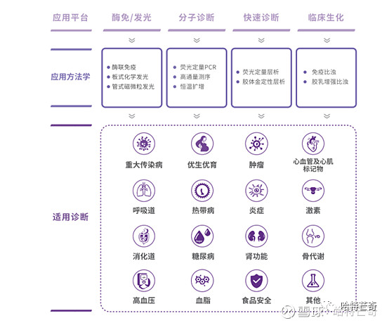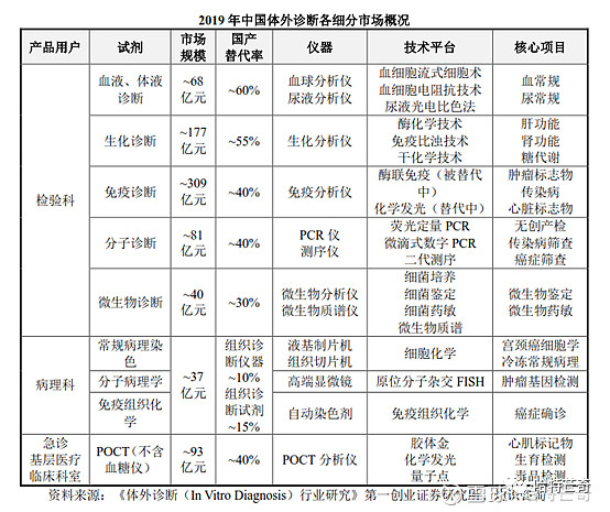 公司介绍 菲鹏生物,成立于2001年,2021年10月递交招股书,用时20年。成立时定义自己为体外诊断核心原料供应商,现在定义自己为:体外诊断整体解决方案供应商 历史估值 2017年8月,股权转让,估值70亿 2018年8月,增资,估值投前80亿 2020年8月,老股转让,估值200亿 公司主要业务:三部分 一、体外诊断试剂原料 二、体外诊断仪器解决方案(主要产品为仪器) 三、体外诊断试剂解决方案(主要产品为试剂半成品,即试剂核心组分) 疫情期间,公司业务得到了巨大的提升,2020年收入10.6亿,2021H1收入11亿。 (1)体外诊断试剂原料 公司的体外诊断试剂原料按照产品性质的不同,可分为核心反应体系原料,如抗原、抗体、诊断酶等,以及非核心反应体系原料,如底物、标准品等,共1,300 余小类。抗原、抗体、诊断酶(让人想起诺唯赞)等是体外诊断试剂产业上游最重要的关键要点,其质量是决定体外诊断试剂质量的最重要因素。 公司有4个原料平台,生化、免疫/发光、分子诊断、POCT,对应十余种疾病诊断领域。非常优秀。(IVD六七种赛道,生化、免疫、分子诊断、POCT、血球、体液诊断等,生化红海,免疫如日中天,分子诊断是未来,POCT是应用场景的延展,红海但增长快。比如迈瑞是血球老大,免疫/发光的四强之一。但是迈瑞没有吃疫情这波红利,失败) (2)体外诊断仪器解决方案 公司自 2017 年开始着力建设体外诊断仪器平台,并将此作为共建开放诊断生态中的重要工具。目前,公司已重点布局了化学发光仪器平台、基因测序仪平台、POCT 分子诊断仪器平台及荧光免疫仪器平台。 化学发光竞争比较激烈,是否能跑出来不知道,新产业、迈克、迈瑞、安图等都很强。 基因测序仪平台,我们在华大智造里讲过,非常难,而且要求平台+应用。一旦建设成功,非常非常厉害,那就有第二个国产平台来打破垄断了。 POCT和荧光免疫就很红海了,基蛋、明德、艾德等等多家上市企业及非上市企业。 公司化学发光仪器可兼容直接化学发光和酶促化学发光等主流检测体系,2020 年度销售 183台,2021 年上半年销售443 台,销售增长较快。 公司高通量基因测序仪平台由被投公司 SequLITE 开发(未来会100%控股)。SequLITE 团队已完成了首款桌面型中低通量基因测序仪(SeqQ 100)功能样机的研发,目前正在对该产品进行测试优化。截至本招股说明书签署日,SequLITE 尚未取得销售收入。 公司 POCT 分子诊断仪器平台由控股子公司润鹏生物开发与运营,目前有全自动核酸检测、快速 PCR 以及高通量全自动肿瘤突变检测等三个应用平台,截至本招股说明书签署日,润鹏生物尚未取得销售收入。 (3)体外诊断试剂解决方案 公司重点聚焦化学发光、分子诊断和生化诊断试剂半成品的开发,并为客户提供试剂开发方案。 公司2018年收入2.2亿元,2019年收入2.89亿元,主要收入来自于抗原、抗体和诊断酶。2020年收入10.6亿,2021年H1收入11亿,原料收入占比仍然为80%左右,小部分是设备+试剂半成品。 公司从原料,切入IVD下游(和诺唯赞一样),也是受到疫情的影响,手里有钱了,正好大干一场。和诺唯赞一样,也都是起步阶段,未来是做大,还是因此会丢失客户,是个未知数,需要观察至少2年。 行业介绍:IVD产业链(之前诺唯赞、义翘神州都是生物试剂领域,菲鹏生物的涉及行业更加广泛) 一:体外诊断行业 体外诊断是指在人体之外通过对人体的样本(如血液、体液、组织等)进行检测而获取临床诊断信息的产品和服务。 我国 2019年体外诊断上游核心原料及仪器元件的市场规模在 200 亿元左右,中游体外诊断仪器及试剂的市场规模约800 亿,而下游面向终端用户的体外诊断服务市场规模达到近2,000 亿。 全球体外诊断行业市场规模从 2015年约 566亿美元增长至 2019 年约 688亿美元,期间年化复合增长率约 5.0%。 中国体外诊断市场规模从 2015年约人民币 427.5 亿元增长至 2019 年约人民币 805.7 亿元,期间年化复合增长率达到 17.2%。(这个增速不错了) 2019 年中国化学发光免疫诊断市场规模约为人民币 220.6 亿元,预计 2030年将增长至人民币 1,034.6 亿元,期间年化复合增长率达 15.1%。 中国 PCR 诊断市场发展迅速,市场规模迅速从 2015 年的约人民币23.7 亿元增长至2019 年约人民币59.3 亿元,期间年化复合增长率达25.8% 2019 年,非科研体外诊断行业中,以成本价计算,非科研用基因测序诊断市场规模约为人民币21.3 亿元。随着国产基因测序平台的陆续上市(华大智造、菲鹏自己?),预计到 2030年将达到人民币 126.0 亿元,2019 年至 2030 年期间年化复合增长率可达约17.5% 全球高通量基因测序仪及耗材行业集中度极高,按收入计算,2019 年超过99% 的市场份额由 Illumina 、Thermo FisherScientific,华大智造,PacificBioSciences(PacBio) 和 OxfordNanopore Technologies (ONT) 这 5 家公司瓜分。 二:体外诊断原料市场概况 原理:太多太复杂,我也看的有点晕,略。 内容:如图所示 市场规模及增速 2019 年全球体外诊断试剂原料市场规模预计约为人民币303.3 亿元,其中,中国市场的规模预计约为人民币 62.9 亿元(800亿总市场,扣掉设备,占比大约10%)。增速与行业增速平行。 竞争格局:数量多,体量小,分散度高(所以菲鹏和诺唯赞都向下游IVD延伸) 全球体外诊断试剂原料市场突出地体现为参与者众多、个体规模较小、行业高度分散的特点,即使像菲鹏生物、HyTest(被迈瑞5.45亿欧元收购)、BBISolution、Meridian 等头部企业的全球市场份额仅在 5%左右,而大量中小
