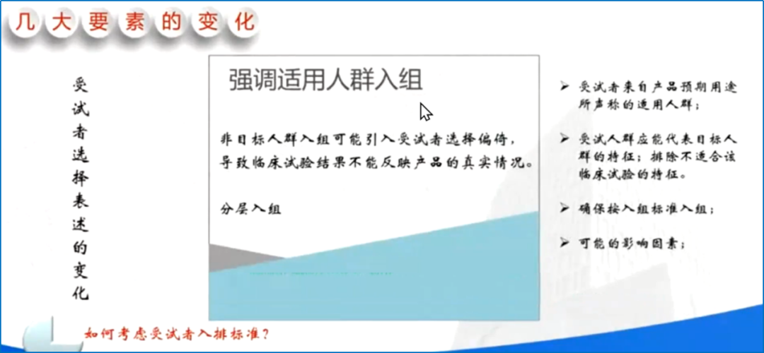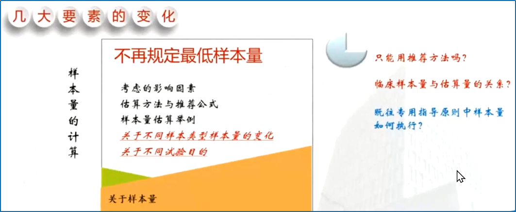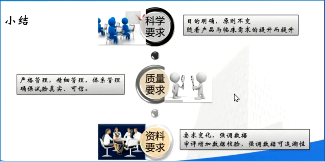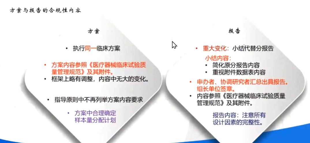同时吕老师强调,大家对新规的关注点集中在伦理层面,出乎他们的意料,也并非修改新规的初衷。本次改版与之前版本相比发生了非常多重大的变化,尤其是在科学性方面的要求,然而目前针对新规的咨询没有太多关注到科学性方面,是当前中国IVD行业整体的科学素养已经完全get到新规精神,还是说尚未跟上形势达到政府对我们的期望?希望是前者吧,那么接下来简单梳理汇报一下培训的内容。 关注点——整体思路的变化 正所谓时也,势也。随着技术和国内IVD行业的发展,监管的思路和重点也需要进行调整。遥想当年,国内IVD刚刚起步,创新性的产品较少,更多的是跟着国际产品走模仿和替代的道路,所以之前版的指导原则更多的是从技术层面进行要求,比如1000例样本,与同类产品比较等,谈不上十足的科学性,但是更符合当时的行业可接受和理解的状况。 随着时间的推移,技术不断迭代,对疾病新的研究持续加快,便涌现出很多创新的产品,要么技术突破,要么临床意义进行拓宽,再按照原来同类产品比较的思路已经满足不了临床评价的需求。在这样的大背景下,才有了这次的改版,所以整体思路更加顺应当下创新的需求。 具体的表现在于: ▸首先明确IVD临床试验的目的:证明产品能够满足预期用途要求,并确定产品适用人群与适应症。而不是单纯为了跟一个同类产品比较性能…… ▸其次新增临床性能的定义:指IVD由预期使用者在预期使用环境中使用,针对目标人群获得与受试者目标状态相关的检测结果的能力。所以临床前研究重点是分析性能,临床研究重点是临床性能。 ▸最后定调本次指导原则的定位:明确临床试验的基本原则和临床试验中需要考虑的关键因素。也就是说不是教我们怎么写方案,而是在设计试验的时候应该遵从的原则以及考虑的因素。 关注点——内容结构变化 如下图所示,2014版和2021版内容结构发生了非常显著的变化: ▸首先,将临床试验方案和报告相关内容摘除了,方案和报告具体要求按照最新版的《医疗器械临床试验质量管理规范》(GCP)的要求来,这版将IVD纳入统一管理。也就是说,这版IVD临床试验指导原则不是教我们写方案的,而是在临床试验设计过程中,考虑和正确设置关键因素。 ▸其次,科学原则首次明确提出。以往的时候我们设计临床试验方案当然也需要考虑科学性,但是没有单独把这一条作为原则来讲,新版进行了明确。 ▸再次,临床试验设计环节篇幅大增。前面讲到,本版指导原则重在试验设计的科学性,因此对于受试者、样本、临床评价指标、统计分析和偏倚控制等内容进行了丰富,以期达到临床试验的真正目的——IVD能够满足预期用途要求,并确定产品的适用人群和适应症。 ▸最后,在GCP的基础上,额外补充关于临床试验质量管理的要求,以细化IVD特殊的要求。 关注点——机构与人员 ▸首先,最大的变化是对组长单位的要求。本次明确了所有临床试验均需要设置组长单位和协调研究者。组长单位伦理委员会负责审查伦理性和科学性,参与单位伦理委员会只需要接受组长单位审查意见,决定是否批准本机构开展。 ▸其次,利好我们IVD企业的一条,强调机构配合注册过程。在审评阶段有可能会有补充实验的发补要求或者对临床试验检查的要求,以往没有法规的约束,临床试验单位可能不会很好的配合,本次改版进行了明确,有了一定的法规保障。 ▸再次,吕老师也解答了统计学负责人的要求。临床试验统计学负责人应为具有相关专业背景、专业能力的人员,强调的是有统计学能力,不需要特殊的证书,可以是申办方人员,也可以是临床机构人员。 关注点——小结 本次改版报告层面有了重大变化,由小结代替了分报告。小结的内容简化了原来分报告的内容,更加重视附件数据表的内容。 关注点——样本量要求 本次改版另一个重大变化是临床设计要素当中对于样本量的要求。以往的200例和1000例这种一刀切的约束被解除,更多的是强调科学性和满足统计学要求。重点包括对统计学、样本类型、试验目的、目标人群、不同亚型/检测物、线性范围(定量)等因素的考虑。 同时,推荐了几种公认的样本量估算方法,原则是定性试验首推单组目标值法,仅在样本不易获取的情况下(如罕见病或稀有亚型)采用不设定临床可接受标准的抽样调查方法。 另外,现有指导原则已经明确试验样本量的,可以按照原则走,也可以按照估算方法计算,还是那句话,科学性原则。 关注点——对比方法选择 旧版中有对比试剂选用对比试剂,没有选用金标准的表述容易让人产生误解。新版在科学性原则的指导下,对方法学选择的表述更加理性和贴近临床试验开展的初衷。最大的原则是在目前条件下选择公认的合理的方法作为对比,可以是已上市同类产品(前提是临床意义明确),也可以是临床参考标准或者两者的结合。因此对于较新的产品,即使市面上出现了一个或者两个同类产品,其临床意义和临床性能未必进行了充分的证实,不必拘泥,科学为主。 关注点——偏倚控制 本次新增了偏倚的概念,如同风险管理应该贯穿IVD全生命周期一样,偏倚控制应该贯穿临床试验的全程,临床试验的设计、机构的选择、同步试验、盲法设置等等都是在对偏倚进行控制,提高临床试验的有效性。接下来的几个关注点也会反映对偏倚控制的要求。 关注点——入组标准 前面讲到临床性