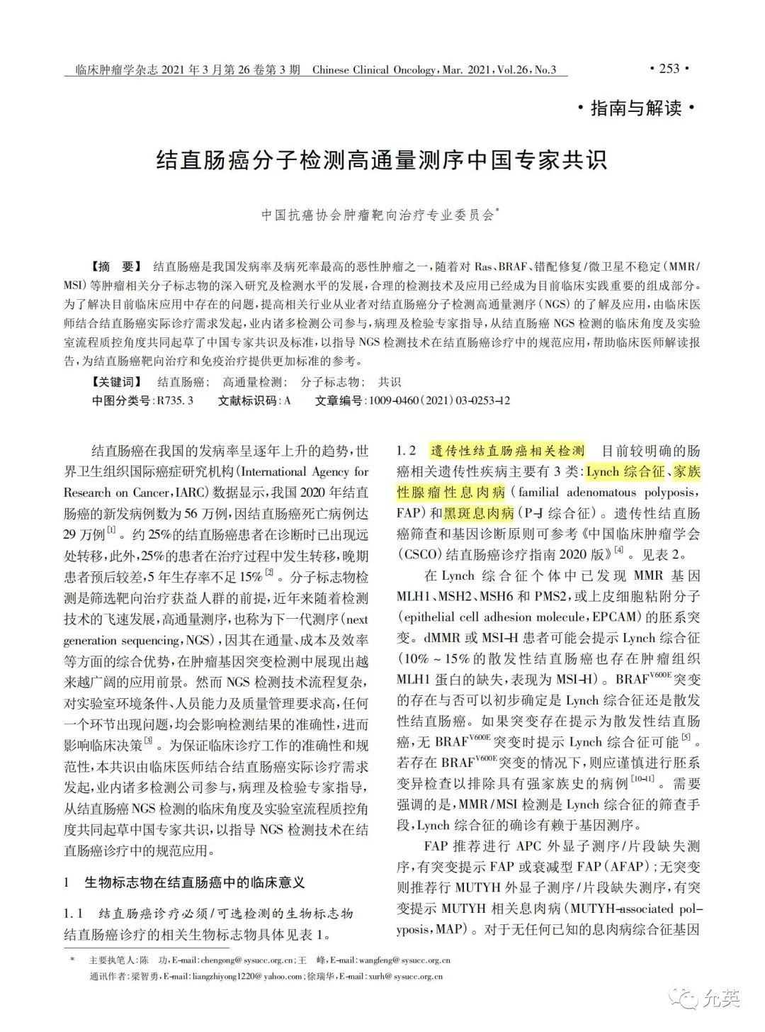 结直肠癌是我国发病率及病死率最高的恶性肿瘤之一,随着对 Ras、BRAF、错配修复/微卫星不稳定( MMR/ MSI) 等肿瘤相关分子标志物的深入研究及检测水平的发展,合理的检测技术及应用已经成为目前临床实践重要的组成部分。针对结直肠癌的检测相关问题,小编为您找来了新版的中国专家共识,希望能够为您答疑解惑!