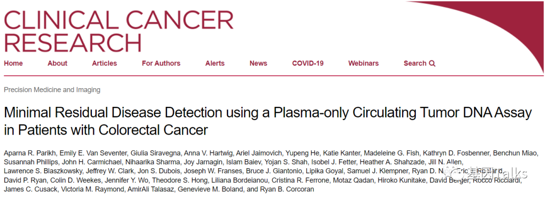 " 甲基化被纳入MRD检测的潜力是明确的,希望这些进展将继续提高下一代MRD检测的性能。 癌症的MRD检测是一种灵敏且特异的用于监测癌症患者血液中肿瘤源性遗传物质(如ctDNA)相对数量的方法。在这种状态下,患者没有肉眼可见的病灶,但确实存在标准临床影像方法无法检测到但最终会导至癌症复发的微小病灶。 MRD,常称为微小残留病灶(Minimal Residual Disease)。使用“Minimal” (微小)这个词,是因为它在文献和临床专家中更常用。不过,“Minimal”这个词可能具有“误导性”,因为低水平的病变在预后和治疗决策方面也可能具有重要意义。“Measurable”(可测量)一词可更准确地描述残留在病人体内的癌细胞的存在。NCCN指南同时使用了“Minimal Residual Disease”(微小残留病灶)和“Measurable Residual Disease”(可测量残留病灶)两个术语。 此外,可行性研究表明在分子水平上检测多种癌症类型的ctDNA同样具有临床效用,文献和临床专家有时也会使用“Molecular Residual Disease”(分子残留病灶)一词。 近年来,国内外在实体肿瘤中基于ctDNA的MRD评估(ctDNA-MRD)的临床数据和证据越来越多,开启了实体瘤MRD检测的热潮。实体瘤ctDNA-MRD检测的技术流派主要有两大类: 1)Tumor-informed assays(肿瘤知情分析) 对原发肿瘤组织进行测序以鉴定患者的特异基因组变异图谱,然后设计引物定制panel或使用固定panel进行个性化的ctDNA检测分析。 2)Tumor-uninformed assays(肿瘤不知情分析) 也可以称为Tumor-agnostic assays或Tumor-naïve assays,即无需原发肿瘤组织,仅依赖于一组预先选定引物/探针设计的与癌症类型相关的固定panel进行ctDNA检测分析,常在检测ctDNA突变的同时,辅以ctDNA甲基化或片段组学等多组学方法。弥补了肿瘤组织样本不足或监测位点不足或TAT过长等问题。 Tumor-informed assays的技术策略更符合大众的认知,在保证高特异性的前提下,可通过监测多位点的sample-level(样本水平)进一步提高其灵敏度,技术门槛相对来说不是特别高。Tumor-uninformed assays的技术策略更类似于早筛,通过提高site-level(位点水平)检测灵敏度并辅以ctDNA甲基化或片段组学并结合机器学习算法进一步提高其灵敏度和特异性,技术门槛相对来说较高。 2021年4月29日,《Clinical Cancer Research》在线发表了“仅使用血浆ctDNA检测结直肠癌患者微小残留病灶(MRD)”的文章,首次公开了Guardant Reveal的研究数据:MRD检测灵敏度达到91%,特异性达100%,这些发现支持了仅血浆ctDNA-MRD检测(Tumor-uninformed assays)的潜在临床应用。1 2021年8月13日,《Clinical Cancer Research》在线发表了“顺应潮流:仅血浆ctDNA-MRD检测的应用前景”的文章,在这里研究者们讨论评估了仅血浆ctDNA检测MRD的能力,以及将甲基化整合到ctDNA检测的潜在好处。2 Parikh及其同事1 和Taieb及其同事3 讨论了仅血浆ctDNA-MRD检测在结直肠癌(CRC)患者中的潜在临床应用。 ▲ ctDNA甲基化和突变在两项研究中的应用比较(Parikh和Taieb) 结直肠癌(CRC)的治疗仍然面临着一个挑战,即相当多的CRC患者因早期疾病复发而过早死亡。尽管临床采用了标准的辅助治疗,但高风险IIIC期CRC患者的5年生存率也仅有53%,究其原因是没有发现影像学上未检测到的微小残留病灶(MRD)。4 目前,仍迫切需要准确确定哪些患者术后存在MRD,以帮助指导减少或增加辅助治疗,并增加治愈的可能性,同时最大限度地减少不必要治疗的相关毒性。 在过去的几年里,我们对ctDNA在CRC诊断和预后中的应用有了广泛的了解。目前,基于ctDNA的MRD评估正广泛应用于癌症的治疗中。
