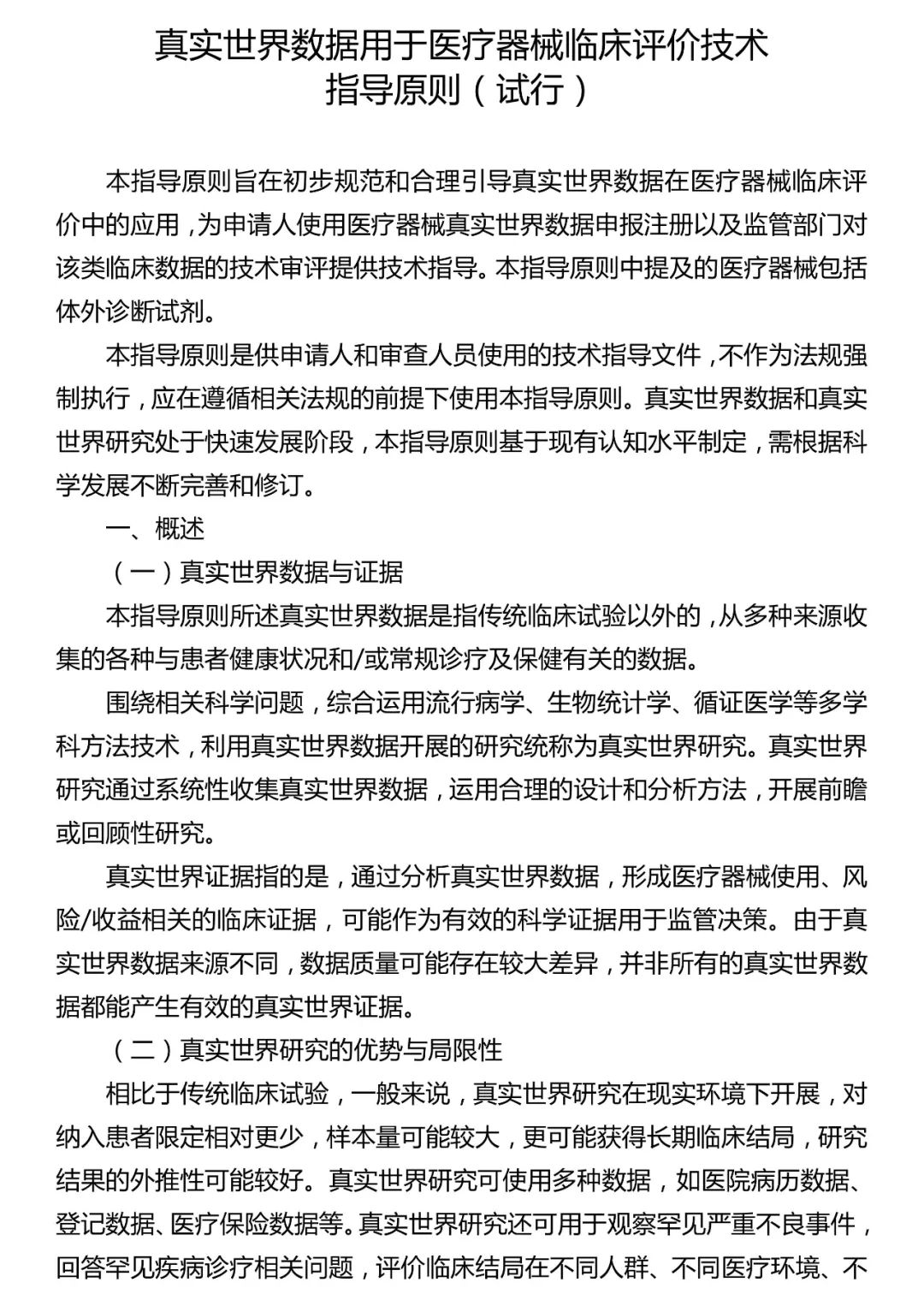 国家药品监督管理局组织制定的《真实世界数据用于医疗器械临床评价技术指导原则(试行)》(2020年第77号),已于2020年11月24日印发,自印发之日起施行(以下简称《指导原则》)。现就《指导原则》的制定背景、主要内容和需要说明的重点问题说明如下: 一、制定背景 《指导原则》在现行医疗器械法规、规章和规范性文件的框架下编写,采纳了IMDRF医疗器械临床评价工作组、登记数据库工作组成果文件的适用内容,参考了境外医疗器械监管机构技术指南、公开发表的科学文献等资料。 二、主要内容 《指导原则》包括五个部分,就真实世界数据用于医疗器械临床评价提出总领性、原则性、前瞻性要求,主要内容包括真实世界数据与证据、真实世界研究的优势和局限性、常见真实世界数据来源、质量评价、真实世界研究设计常见类型及统计分析方法、可考虑将真实世界证据用于医疗器械临床评价的常见情形。 三、需要说明的重点问题 (一)关于真实世界数据的相关概念 真实世界数据研究处于高速发展期,相关定义和理念不断更新,不同国家和地区存在差异。为促进对真实世界数据的统一理解,并为研究发展预留空间,《指导原则》在正文中对相关概念进行了描述。 对于关键概念“真实世界数据”的范畴,《指导原则》结合中国监管机构牵头的IMDRF临床评价工作组成果文件草案“上市后随访研究”的相关描述,根据中文语言习惯,将其描述为“传统临床试验以外的,从多种来源收集的各种与患者健康状况和/或常规诊疗及保健有关的数据”。 (二)关于真实世界数据的质量评价 真实世界数据质量评价是开展真实世界研究的基础,直接影响真实世界研究生成的证据强度。《指导原则》从相关性和可靠性两方面对数据质量提出要求,并采纳IMDRF医疗器械临床评价工作组、IMDRF登记工作组成果文件的相关内容,从代表性、完整性、准确性、真实性、一致性、可重复性6个方面提出数据质量评价的具体考虑要素,提高质量评价的可操作性。 (三)关于真实世界数据在医疗器械临床评价中的使用 《指导原则》明确真实世界数据可用于医疗器械全生命周期临床评价,包括上市前临床评价及上市后临床评价。《指导原则》从不同维度,梳理总结了真实世界证据用于医疗器械临床评价的十一种常见情形,包括:在同品种临床评价路径中提供临床证据;用于支持产品注册,作为已有证据的补充;临床急需进口器械在国内特许使用中产生的真实世界数据,可用于支持产品注册,作为已有证据的补充;作为单组试验的外部对照;为单组目标值的构建提供临床数据;支持适用范围、适应症、禁忌症的修改;支持在说明书中修改产品的临床价值;支持附带条件批准产品的上市后研究;用于高风险植入物等医疗器械的远期安全性和/或有效性评估;用于治疗罕见病的医疗器械全生命周期临床评价,加快其上市进程,满足患者需求;上市后监测等。从十一种常见情形可以看出,在当前发展阶段,真实世界证据在医疗器械临床评价中,更多的是作为已有临床证据的补充,不能取代现有临床评价路径。 |