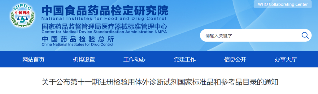 注册检验用体外诊断试剂国家标准品和参考品目录 (第十一期)