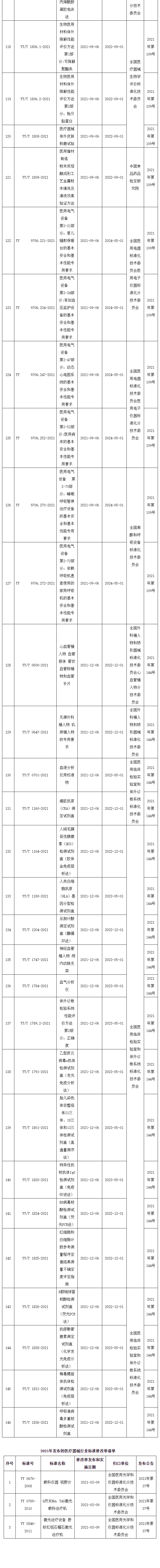 | 2021年,医疗器械标准化工作坚持以习近平新时代中国特色社会主义思想为指导,认真贯彻落实中共中央 国务院《国家标准化发展纲要》和《国家药品监督管理局国家标准化管理委员会关于进一步促进医疗器械标准化工作高质量发展的意见》(国药监械注〔2021〕21号)要求,重点加强医疗器械基础通用标准、新兴技术领域以及监管急需领域标准制修订,标准体系结构不断优化完善。2021年共发布医疗器械标准181项(国家标准35项,行业标准146项),行业标准修改单3项,标准发布数量较上一年度增长21%。截至2021年12月底,医疗器械标准共计1849项,其中国家标准235项、行业标准1614项,强制性国家标准91项、强制性行业标准298项,推荐性国家标准144项、推荐性行业标准1316项,进一步提升医疗器械标准质量、增加标准供给,更好地发挥医疗器械标准在保安全、促发展中的支撑作用。