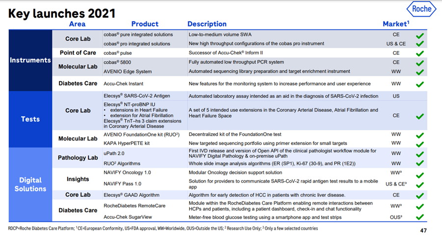 罗氏诊断各细分业务2021年上市的产品: