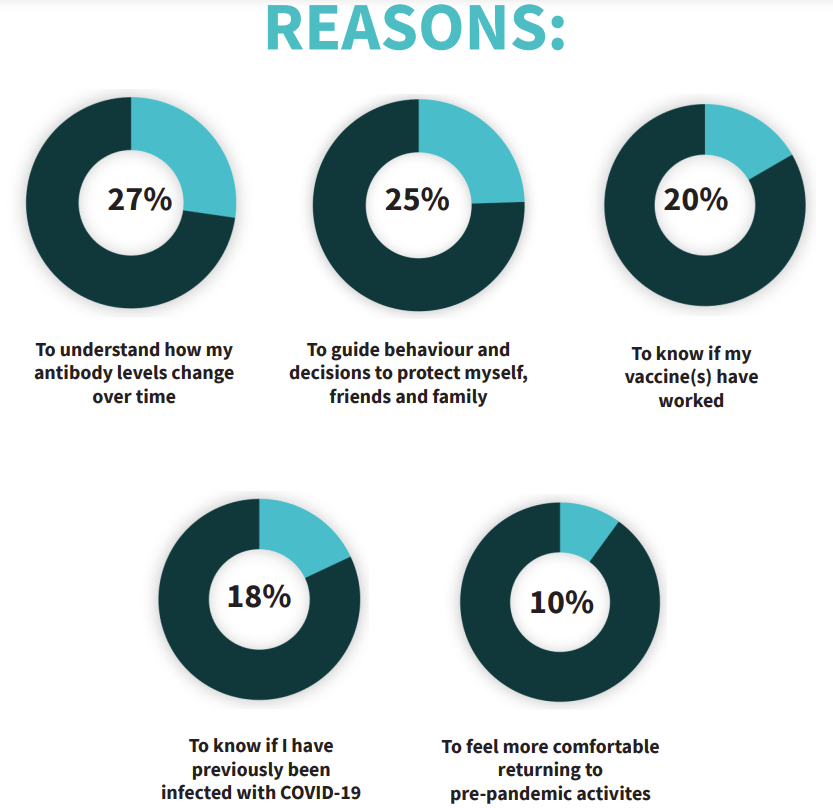 想根据抗体水平调整日常防疫措施占25% 想知道疫苗是否起作用的占20% 想知道自己是否已经感染过的占18% 想在心理上做好更充分的准备回到疫情之前社会的占10%