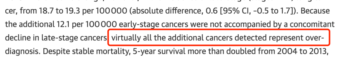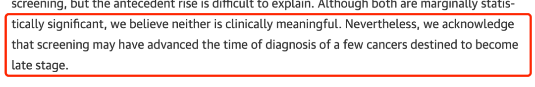 其实作者在原文中也很委婉的表达了这个观点:筛查可能提前了少数注定要进入晚期的癌症的诊断时间。