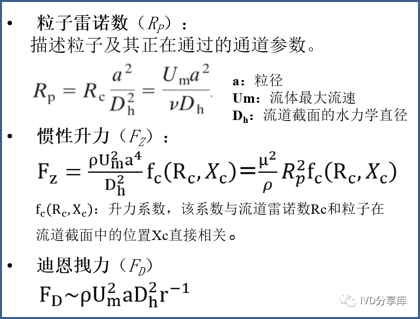 根据下方的公式推导:  ①从粒子雷诺数RP的公式中,我们可以看出粒子雷诺数RP正比于细胞直径a的平方;②从惯性升力Fz的公式中,我们可以看出惯性升力Fz正比于粒子雷诺数RP的平方。综上①②可知,惯性升力Fz正比于细胞直径a的四次方。③从迪恩拽力FD的公式中,我们可以看出迪恩拽力FD正比于细胞直径a的一次方。细胞直径a越大,那么惯性升力Fz越远大于迪恩拽力FD,此时细胞几乎不受迪恩流影响,会惯性聚焦至流道内的平衡位置;