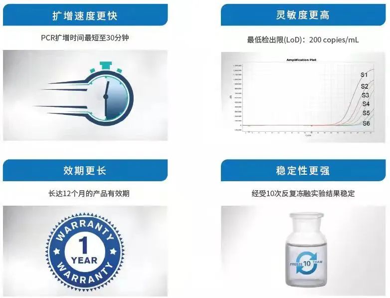 新型冠状病毒2019-nCoV核酸检测试剂盒(荧光PCR法) 注册证编号:国械注准20223400364 2022年3月16日,上海思路迪生物医学科技有限公司(下简称“思路迪诊断”)研发生产的“新型冠状病毒2019-nCoV核酸检测试剂盒(荧光PCR法)”通过国家药品监督管理局(NMPA)审核,获批上市! 本次思路迪诊断获批上市产品——新型冠状病毒2019-nCoV核酸检测试剂盒(荧光PCR法),成功将荧光定量PCR反应时长从以往的1小时以上拉进了30分钟大关。思路迪诊断通过对试剂组分的优化,在保证高灵敏度(LoD 200 copies/mL)的前提下,实现了扩增反应时间显著缩短。此项改进使得现有荧光定量PCR仪使用周转率大幅度提升,尤其在应对新冠大规模筛查出现检测仪器短缺时,可有效缓解因仪器数量瓶颈导至的检测能力不足以及出具报告时间滞后的问题。因鉴于此,这款高灵敏度且超快速新冠核酸检测产品获得了上海药监局的大力支持,给予了优先审评推荐。 扩增时间短 *此数据引自澎湃新闻于2020年5月9日刊发文章《核酸检测出结果到底需要多长时间?专家告诉你!》 据悉,思路迪诊断自主研发的此款新冠核酸检测试剂实现了重大的技术突破,可将荧光定量PCR反应时长从行业通常时间80-120分钟,缩短至30分钟以内。同时,此项重要改进还可大幅提升现有荧光定量PCR仪的使用周转率,反映在实际使用中,可实现单位时间固定仪器配置下更多样本检测量,尤其在应对新冠大规模筛查出现检测仪器短缺时,可有效缓解因仪器数量有限导至的检测能力不足,以及出具报告时间滞后的问题。在面对大规模人群核酸筛查时,该试剂的性能优势愈加突出。 检测灵敏度高 *注:此数据为IVD从业者网2021年9月10日刊发《国内30款新冠核酸检测试剂参数对比》中各家产品最低检测限中位值 国家卫健委医政医管局2021年9月发布了《全员新型冠状病毒核酸检测组织实施指南》(第二版)中指出,“建议选择检测限低、灵敏度高的检测试剂盒(检测限≤500拷贝/mL)”。思路迪诊断此款试剂在提高扩增速度的同时,并未在检测灵敏度方面进行妥协,仍然保持了检测限200拷贝/mL的一流水平。 产品特点汇总 思路迪诊断此款新品可覆盖新冠相关ORF1ab和N两个基因,检测灵敏度高,扩增速度快,产品效期长达12个月,且可经受10次以内反复冻融使用,实验结果稳定。同时基于生物信息学分析,此款试剂针对包括奥密克戎在内的被WHO列为特别关注的突变株都有效。