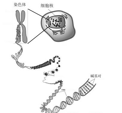 基因在染色体上的位置称为座位,每个基因都有自己特定的座位。在同源染色体上占据相同座位的不同形态的基因都称为等位基因。在自然群体中往往有一种占多数的(因此常被视为正常的)等位基因,称为野生型基因;同一座位上的其他等位基因一般都直接或间接地由野生型基因通过突变产生,相对于野生型基因,称它们为突变型基因。在二倍体的细胞或个体内有两个同源染色体,所以每一个座位上有两个等位基因。如果这两个等位基因是相同的,那么就这个基因座位来讲,这种细胞或个体称为纯合体;如果这两个等位基因是不同的,就称为杂合体。在杂合体中,两个不同的等位基因往往只表现一个基因的性状,这个基因称为显性基因,另一个基因则称为隐性基因。 3、什么是DNA? 答:脱氧核糖核酸,英文缩写为DNA,又称去氧核糖核酸,是染色体的主要组成部分,基因就是DNA双螺旋上面的片断。DNA具有双螺旋结构和半保留复制的结构特点。