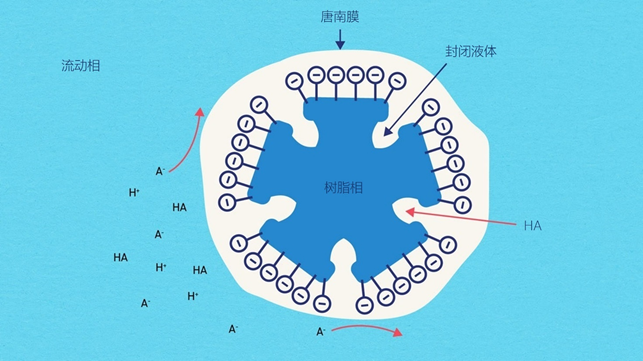 图3 | IEC中的分离机制,图中显示了中性物质通过唐南膜进入树脂相的过程