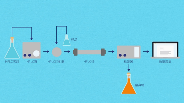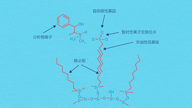 几微升的样品溶液被注入反相色谱柱。当含有离子对试剂的流动相流经色谱柱时,分析物离子与带相反电荷的试剂离子相互作用,形成中性复合物,可在非极性固定相上分离。分析物的分离由离子对试剂、有机改性剂和任何添加到流动相的盐控制。